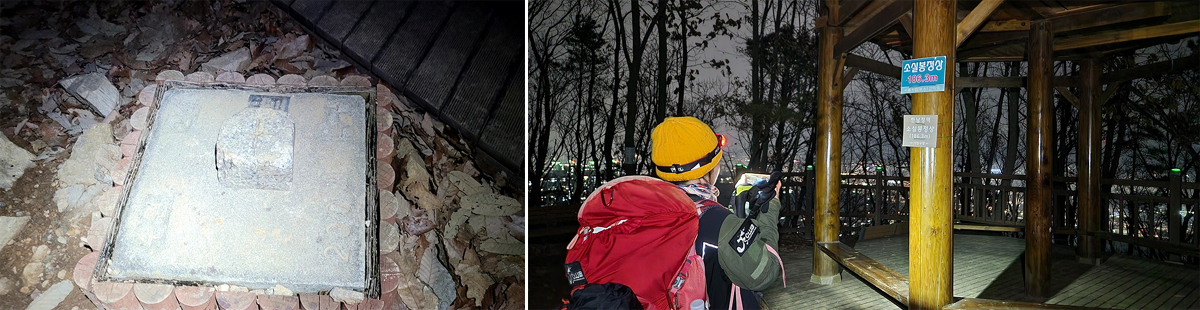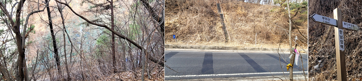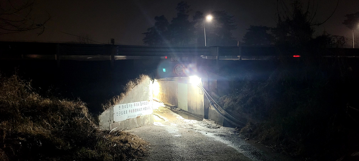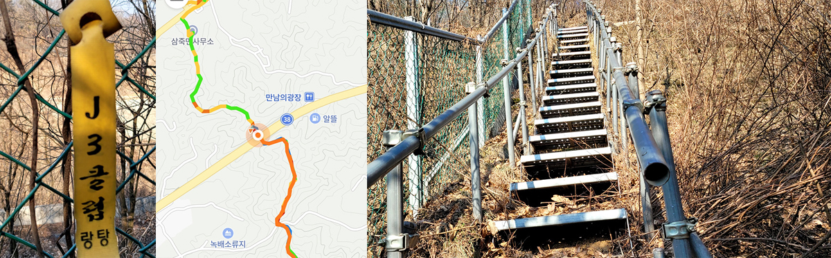 | [4일차] 175km 목감공원-목감초등학교-논곡중학교-운흥산(204.1) 왕복-수도권제1순환고속도로(굴다리)- 수인로-금오로-시흥시 무지내동 산길-무덤가 지나 내려와 수도권제1순환고속도로 진입 약400m 진행(총600m 중)- ((새벽6시45분 고속도로순찰대에 잡힘, 도로공사시흥영업소 시흥졸음쉼터 일산방향 하차)) 시흥영업소-지하통로 이동 TG 건너 등로 고갯길 비룡사 직전 임도(시흥시 계수동 577-3.대흥상사까지 약 2.4km ) ~((오전9시35분 수도권제1순환고속도로 접선 부분 도착-도킹까지 약 5km)) = > 별도 총 7.4km 도보 이동 이 구간은 우회로 찾아서 돌아가시는 것이 좋을 듯 합니다. 수도권제1순환고속도로 도로 오름 부분 접선-봉재산(148)-양지산(151)-길마산- 중림고개, 창성포장(수인로) 임도 따라-제2경인고속 아래 굴다리 통과-범안로- 계수동고개( 시흥시 계수동 577-3.대흥상사)-비룡사(절)-삼십고개(30m,계수로)- 소래조경 앞 굴다리 통과-소사로-봉매산-여우고개(생태이동통로,호현로/39번도로)- 하우고개(구름다리,하우로)-성주산(217)-거마산-비루고개(50m)- 수현삼거리 지나(식당 편의점, 인천 남동구 장수동)-철마산-만월산구름다리-새말공원-만월산(187.1)- 십정근린공원-백운공원-아트센터입구삼거리-부평도서관 옆길- 함봉산(철마산(165))-원적로-원적산(196)-서달로-봉오대로길(식당 편의점)-아나지고개(봉오대로,루원교)- 철마산(287)-천마산(286)-중구봉(276)-장명이고개(징매이고개생태터널)-계양산(394)-피고개산(215)- 검암산(185)-꽃메산(133)-경인아라뱃길(목상교 건너)-아라로-아라마루휴게소 /야간 약1시간 휴식(음료 자판기 및 화장실) |