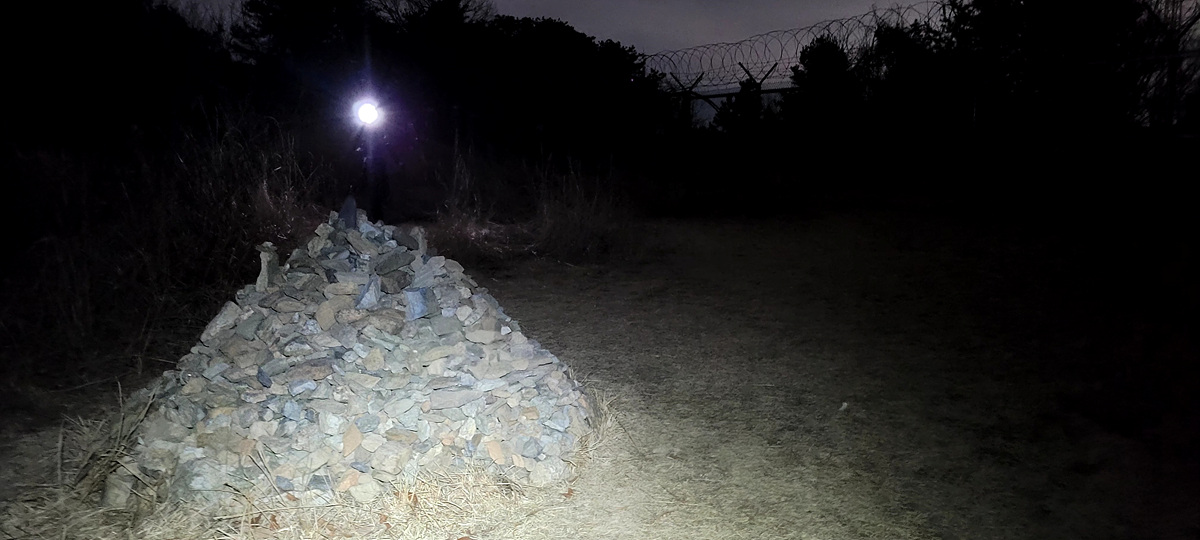 | [5일차] 220km 도로 따라 독정역(원래 산길 이용)-독정역사거리-백석고개(백석스포렉스)-할메산(104.8)-원당대로- 마전역(원정로, 편의점 식당)-능내근린공원(검단로)-현무체육공원-송월교회묘지-세자봉로- 가현산세자봉-봉수대로-묘각사 앞마당 통해 산길 진입-가현산-스무네미고개(생태이동통로)- 유현삭시로-대곶남로(400번국도)-수안산(147)-스카이랜드타운몰(식당)-대곶신사거리- 대곶사거리(편의점외)-대곶초등학교-석정공단-마송로-담터사거리-김포대로-검암1로- 것고개(통진읍, 편의점,모텔,식당 등)-서암생활체육공원-고정리 지석묘-월하로-고정로- 애기봉로(56번도로)-용강로-문수산(376)-문수산로-보구곶리 마을회관 |