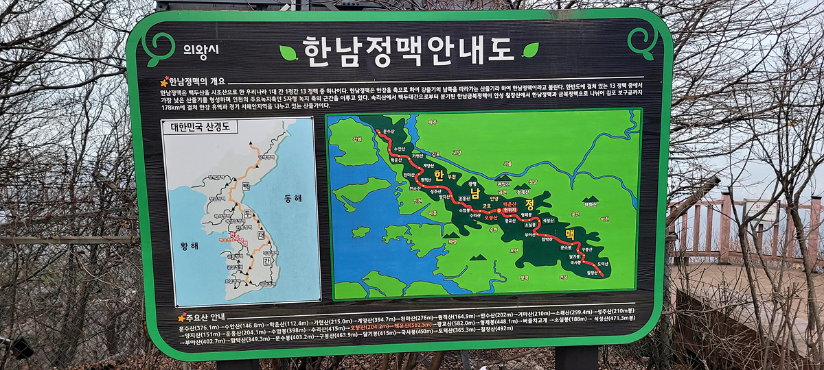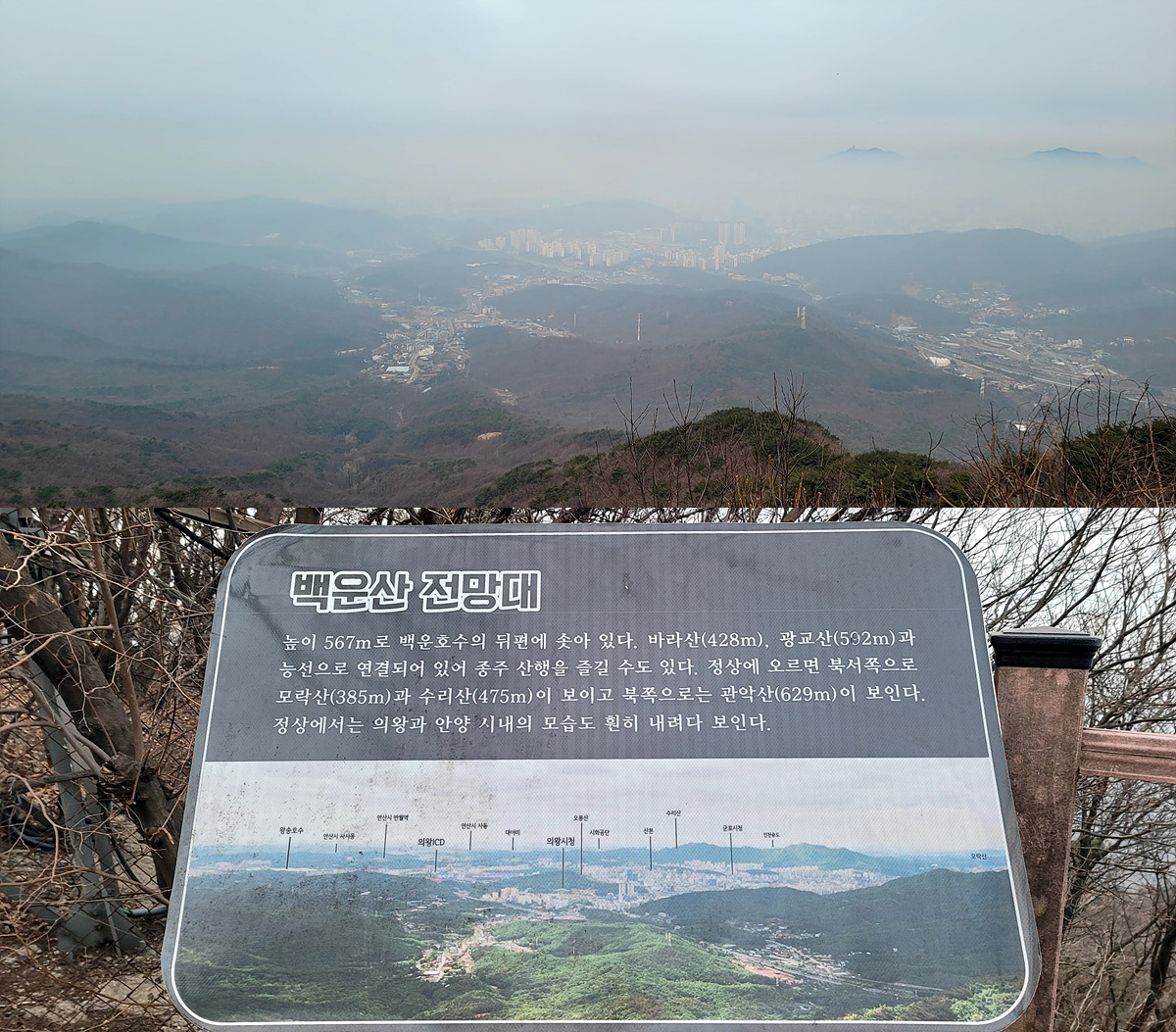 의왕시, 용인시, 수원시를 가르는 한남정맥의 백운산