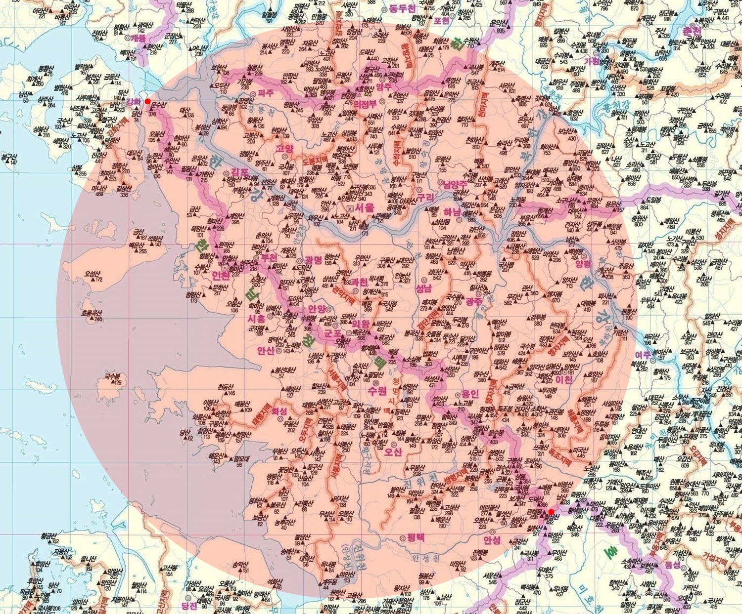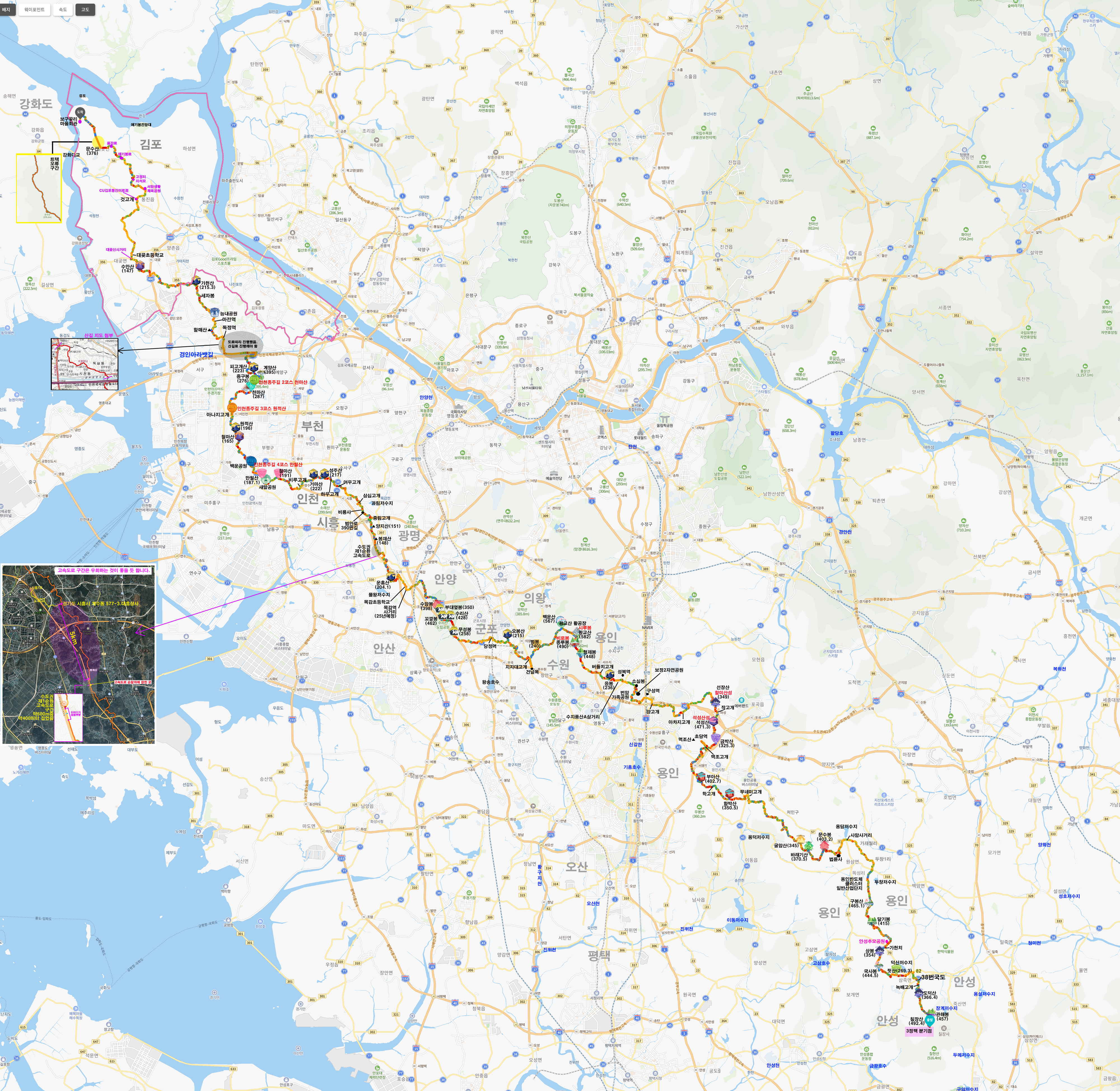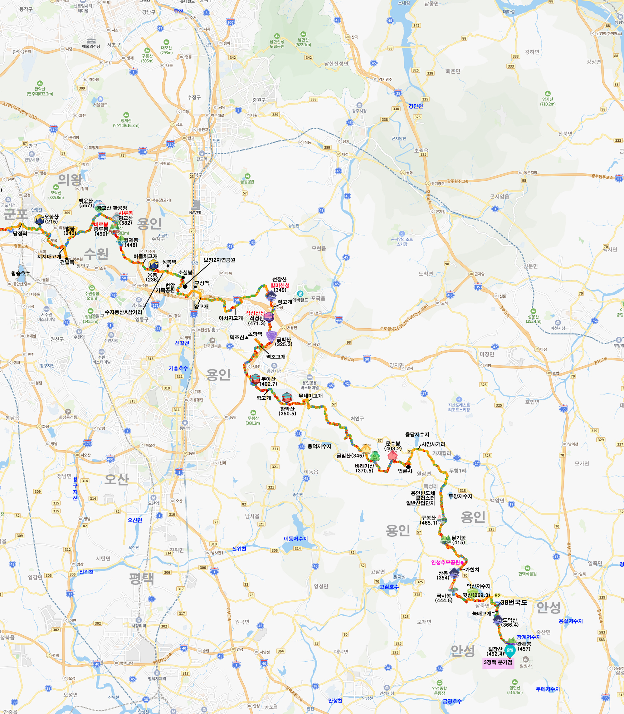 | 한남정맥 220km (별도 걸음 : 들머리까지 1km+시흥영업소~수도권제1순환고속도로까지 도보 7.4km=8.4km) |