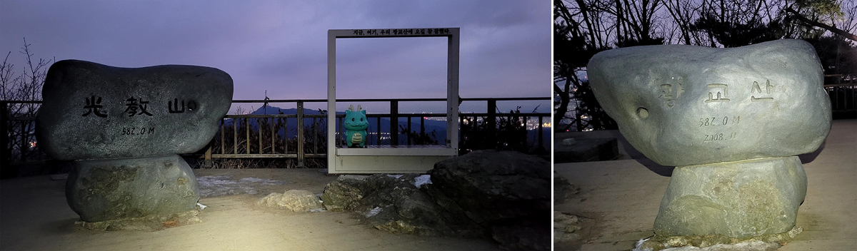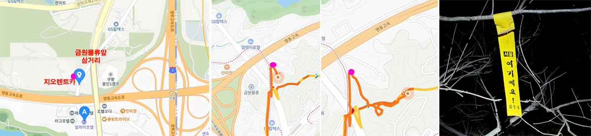 | [2일차] 83km 농촌파크로-법륜사 입구 옆길 등로-문수산 마애보살상-문수봉(403.2) / 앵자지맥 분기점- 쌍령지맥분기점-바래기산(370.5)-망덕고개(해실이) / 청년김대건길-굴암산-염치고개-연화사 옆길(이동읍 천리) 안터입구삼거리/(백옥대로, 식당 모텔)/무네미(물넘어)고개 -함박산(350.5)-서울공원묘원-학고개(터널 위)- 부아산(402.7)-지삼로-수도권제2순환고속도로(화성-광주)/무봉산2터널-신중부대로(상하터널 위)- 효자고개,중부대로(멱조고개, 수도권제2순환고속도로 400. 멱조2교 이용 횡단)- 화운사입구삼거리, 메주고개(원래 횡단보도로 건너면 됨)-<초당역 횡단보도(편의점 이용 하느라^^)>- 에이스동백타워(식당, 편의점 있음) 옆 산길 등로 진입-금박산(326,금밭산)-석성산 임도삼거리(화장실)- 도로따라 통화사 입구 지나-석성산성, 봉수대, 헬기장, 석성산(471.3)-마성터널, 영동고속도로-동백터널- 마성(EVERLAND)IC(성산교),작(잣)고개-용인 할미산성, 선장산(349)-검단지맥분기점- 향린2로(향린촌마을과 88CC 사이)-구성로-구성로-석성로(청덕담비2 통로 굴다리)- 영동고속도로(아래 굴다리)-동진원1공원-항상교회사거리(언동로, 윤봉원가구 옆길 진입)- 수원CC 옆길-새천년5단지사거리-석성로, 신정로(새천년보행통로,활주로통로/신갈JC 둘러서 감)- 금원물류(쿠팡)앞 삼거리-지오렌터카신갈점 옆 산길 등로 진입-청명지맥분기점-외실봉(157)-소현중학교- 소실봉(186.3)-수지풍산A삼거리-/<택시 이동 풍덕천사거리 모텔, 편의점 이용> |