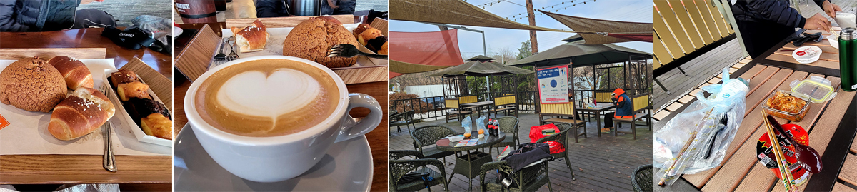 하트 뿅뿅~ 달달한 커피와 빵, 그리고 차 안 가득 준비해온 먹거리.