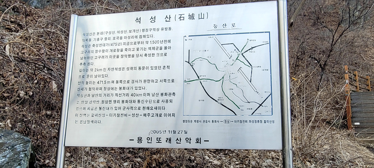 석성산(석성산성)-선장산(할미산성)-아차지고개-양고개-구성역-소실봉-응봉-버들치고개-형제봉-비로봉(종루봉)-