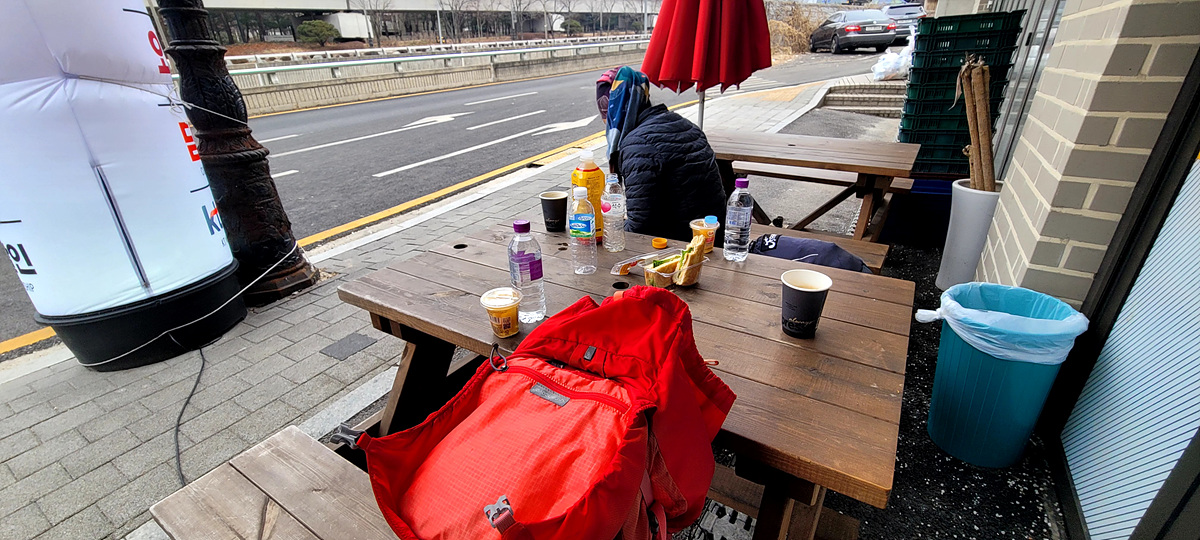 아침 식사 못했지만 배까지 채우며 들머리 이동합니다.