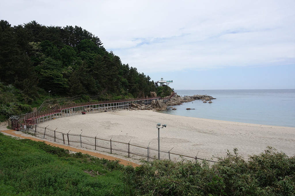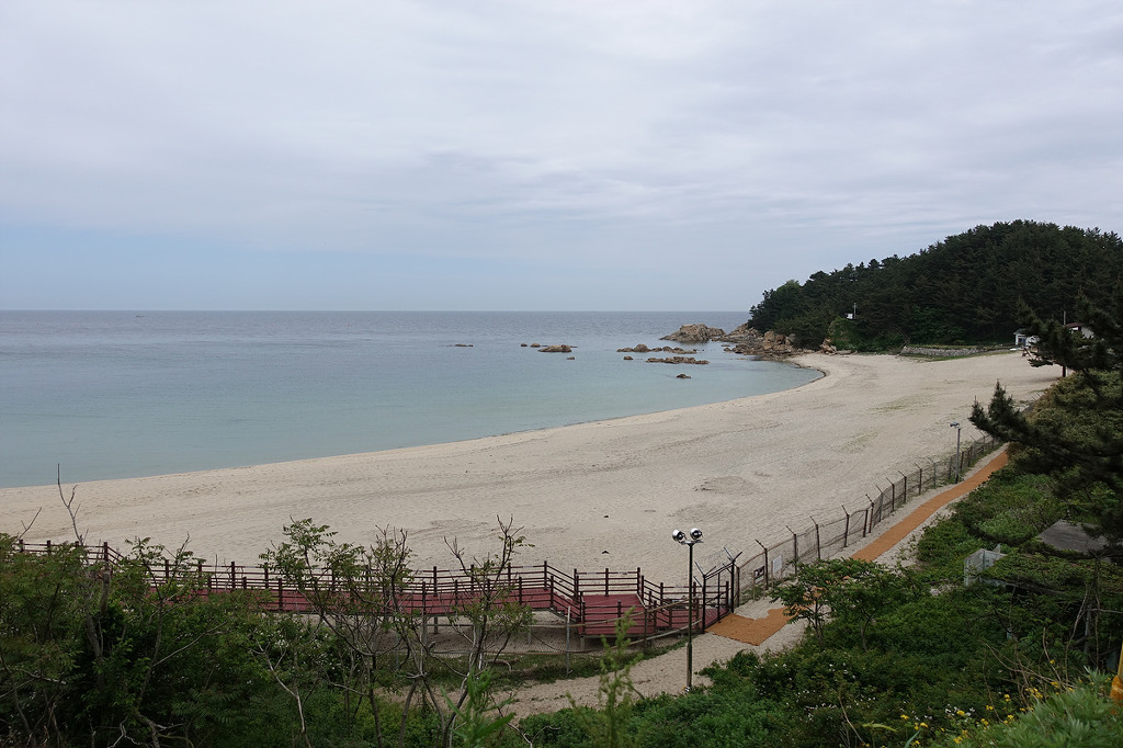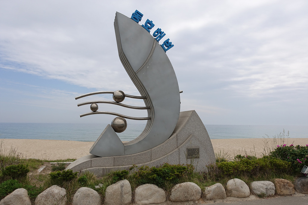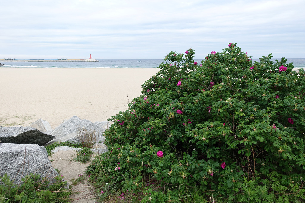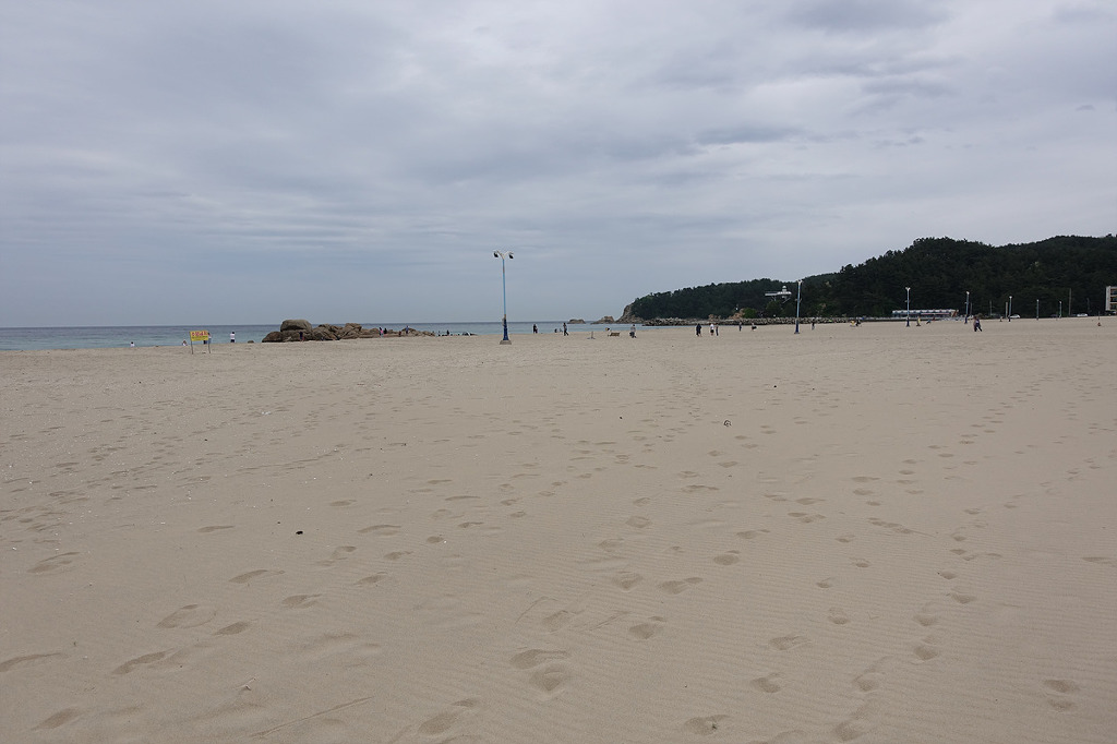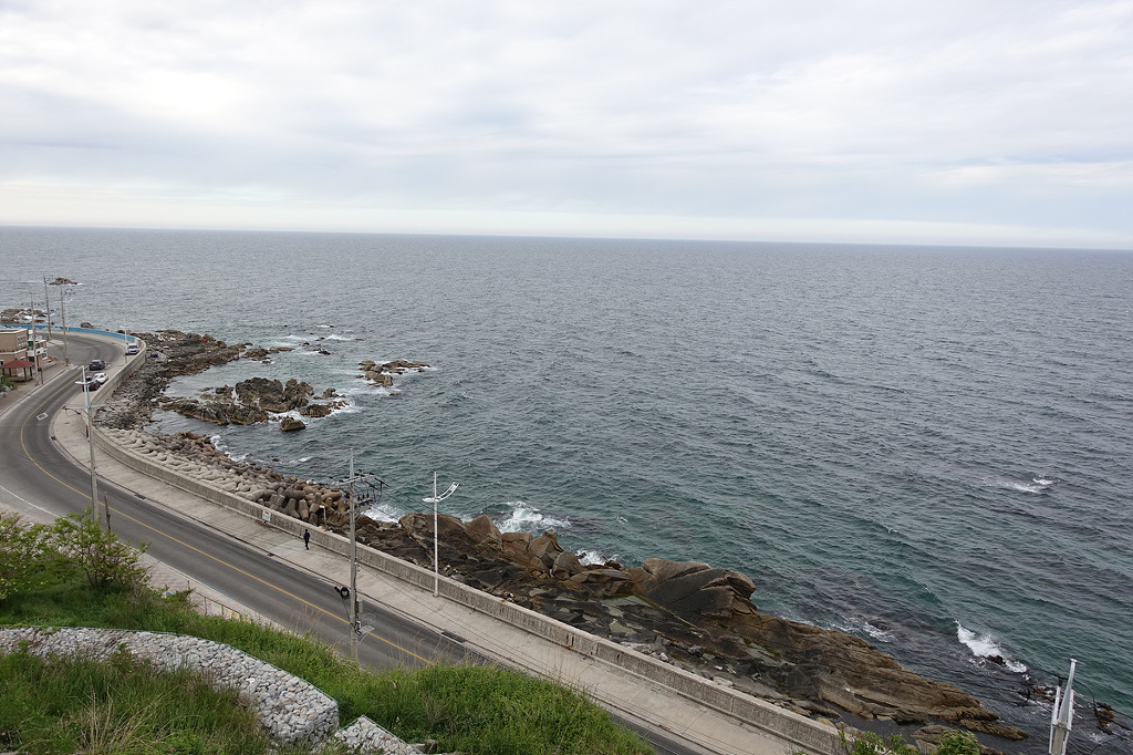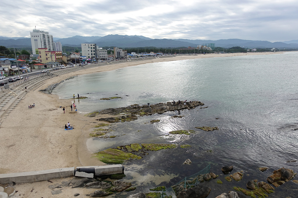 동해의 맑은 물 곁에서 하루종일 거닐며