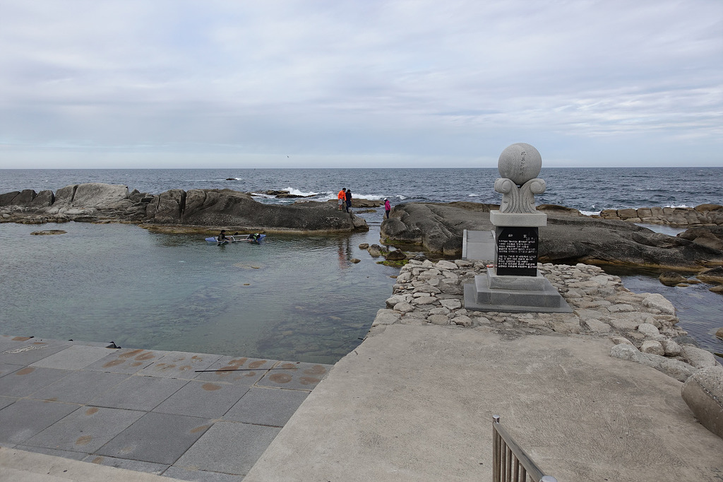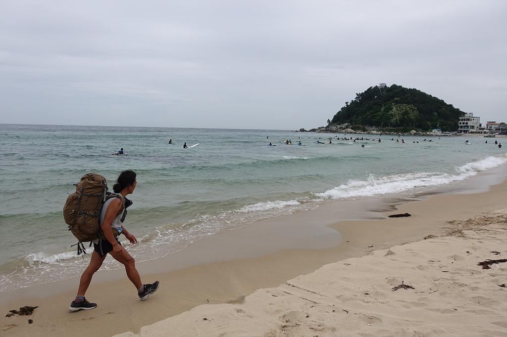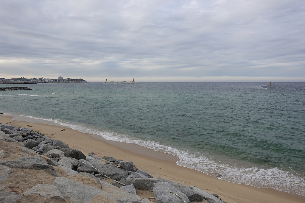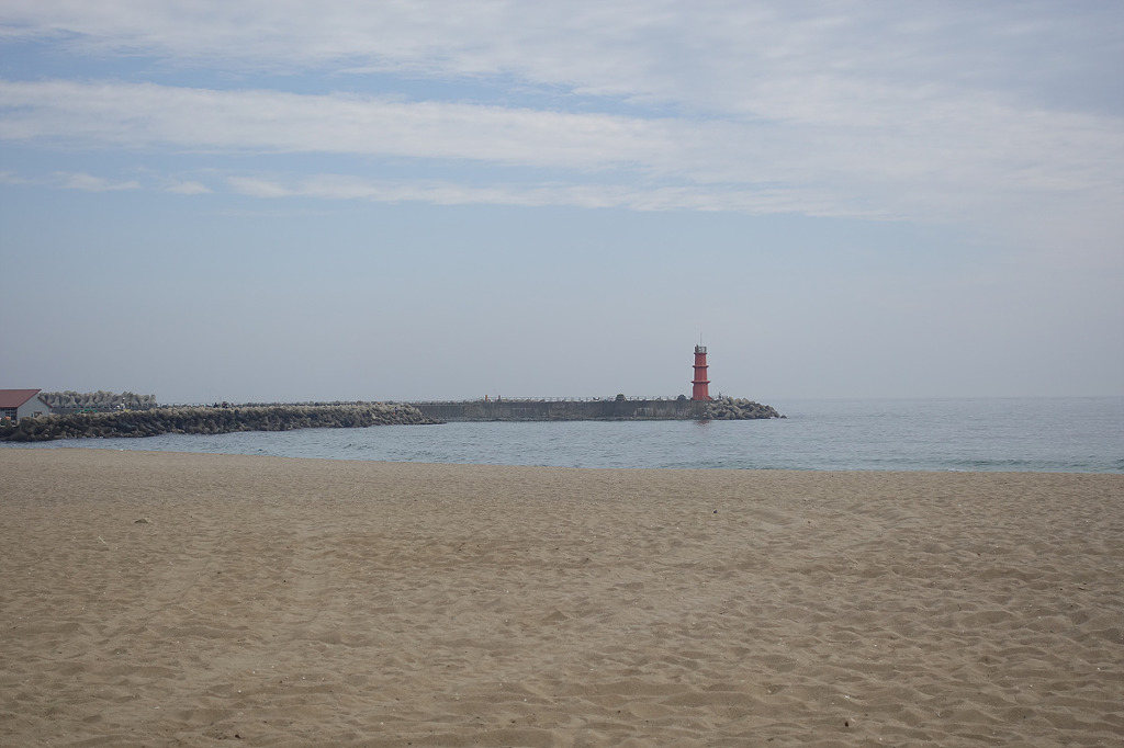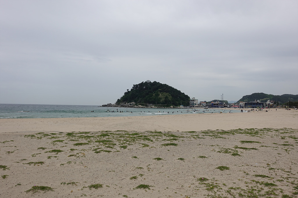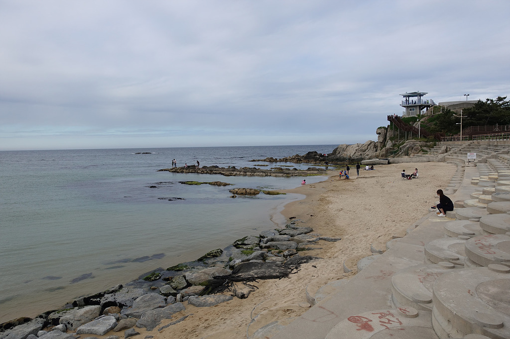 동해의 맑은 물 곁에서 하루종일 거닐며