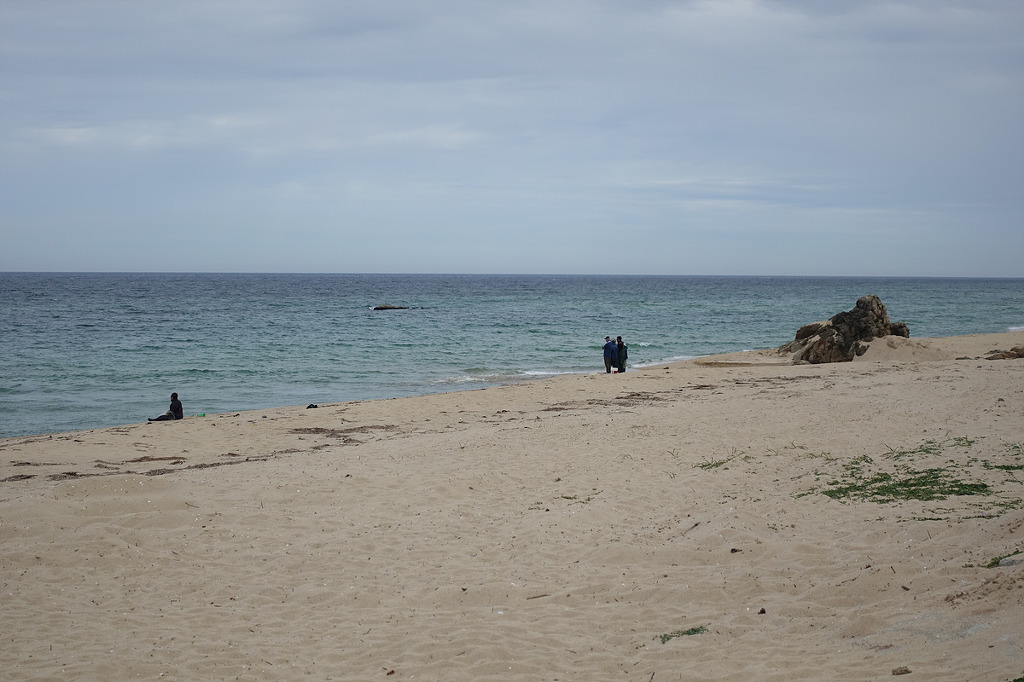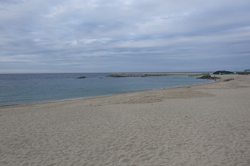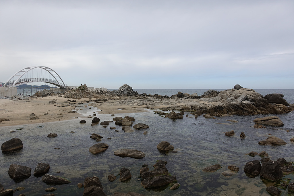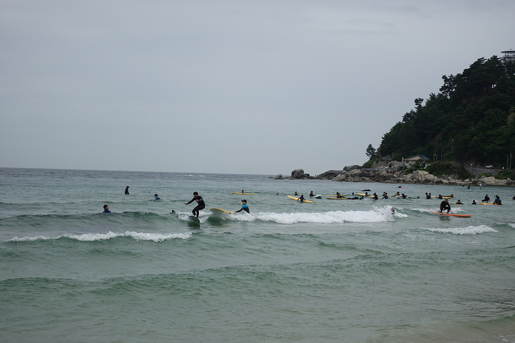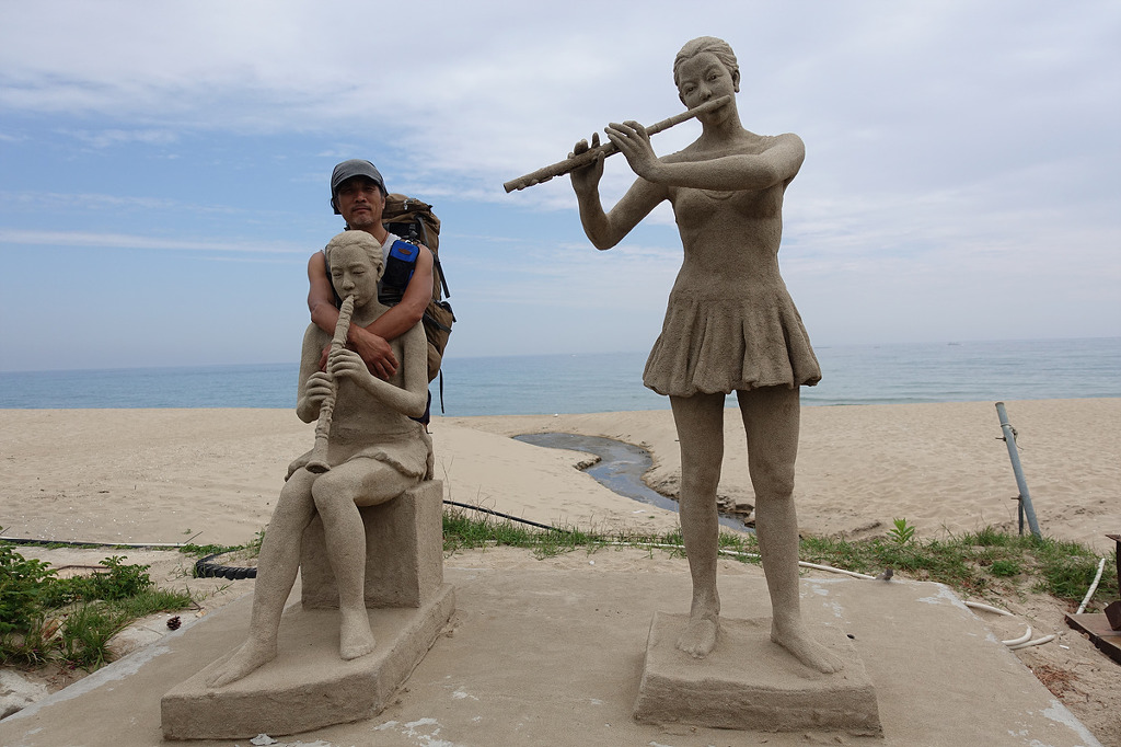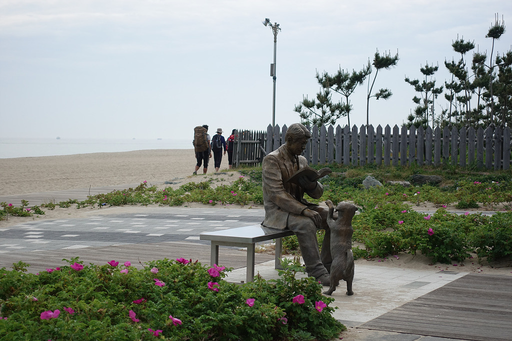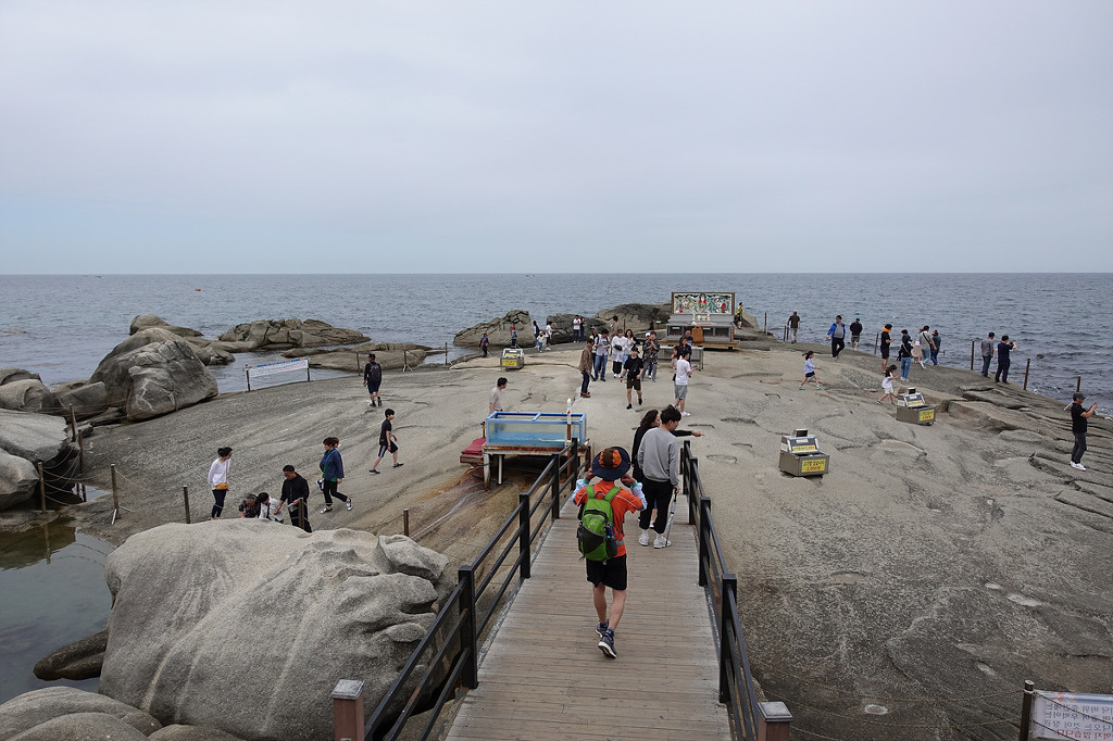 동해의 맑은 물 곁에서 하루종일 거닐며