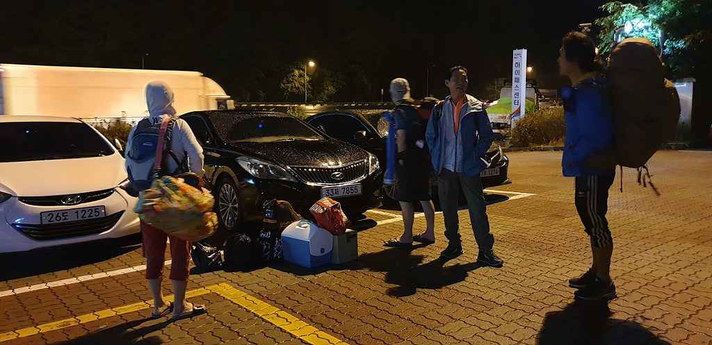 차에서 내려 서로들 인사하며 짐 꺼내는데...
