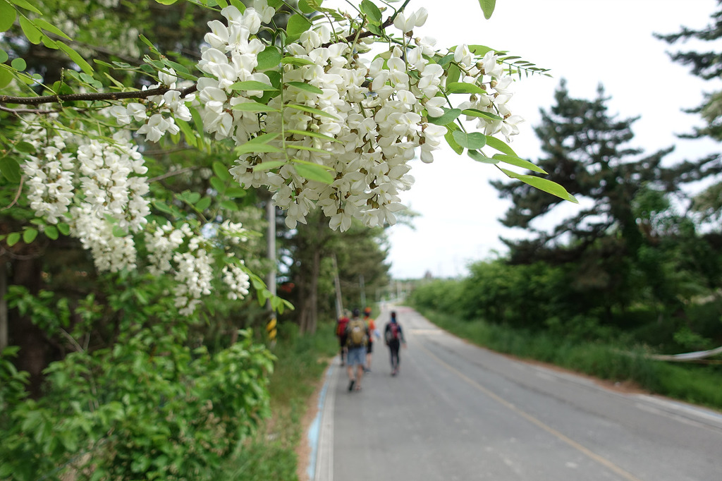 도로 옆으로 새하얗게 아카시아꽃이 활짝~