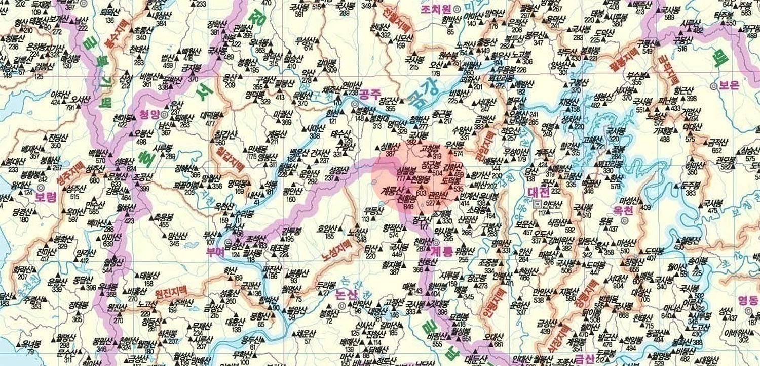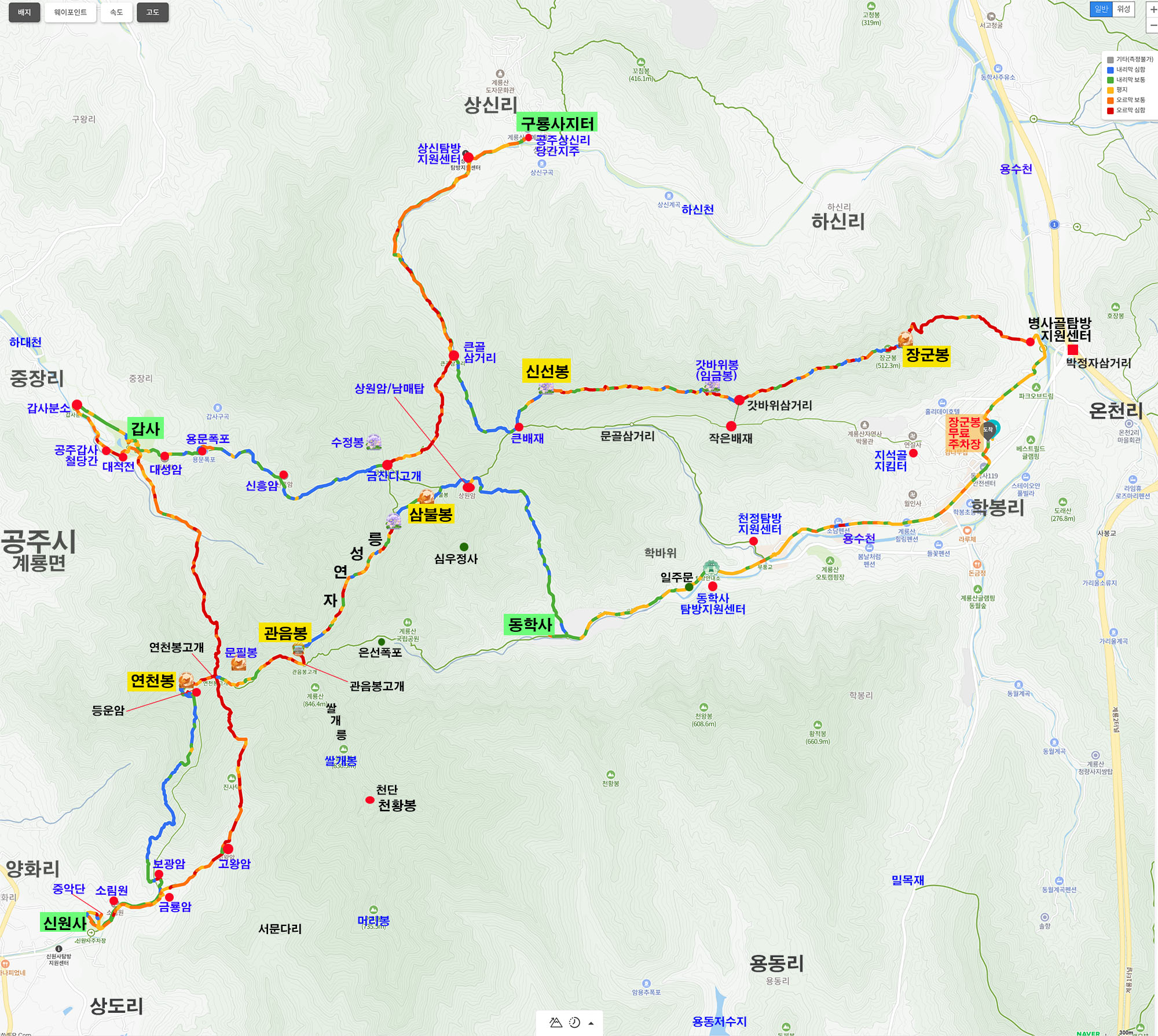 계룡산의 주능선 지도가 훤~하게 머릿속에 그려집니다.