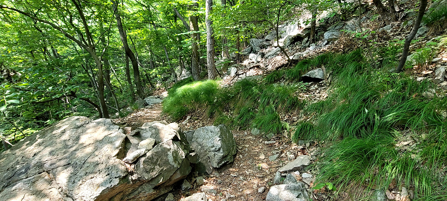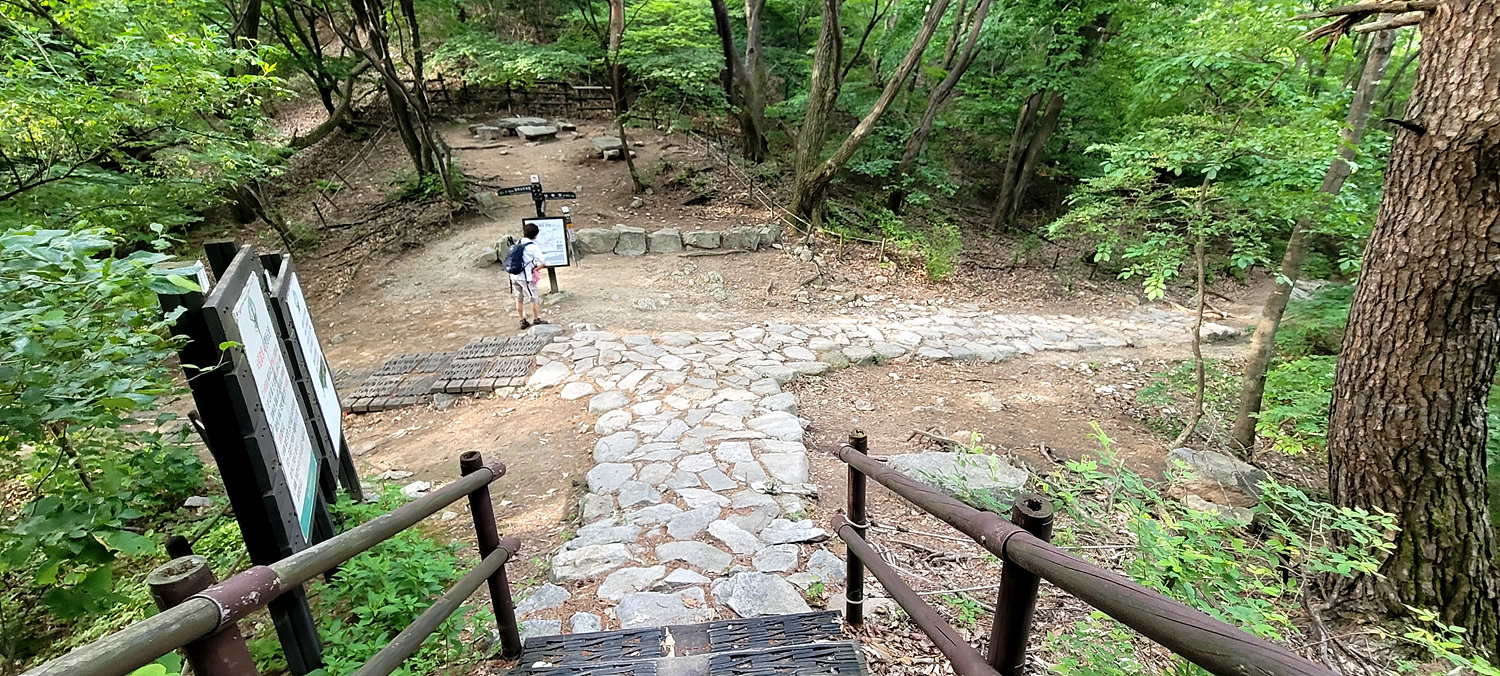 걷기 편하지만은 않은 제법 까칠한 동학사로의 하산길
