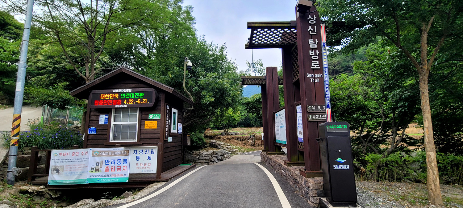 주차장 출구쪽에서부터 병사골탐방지원센터까지는 약 850m거리