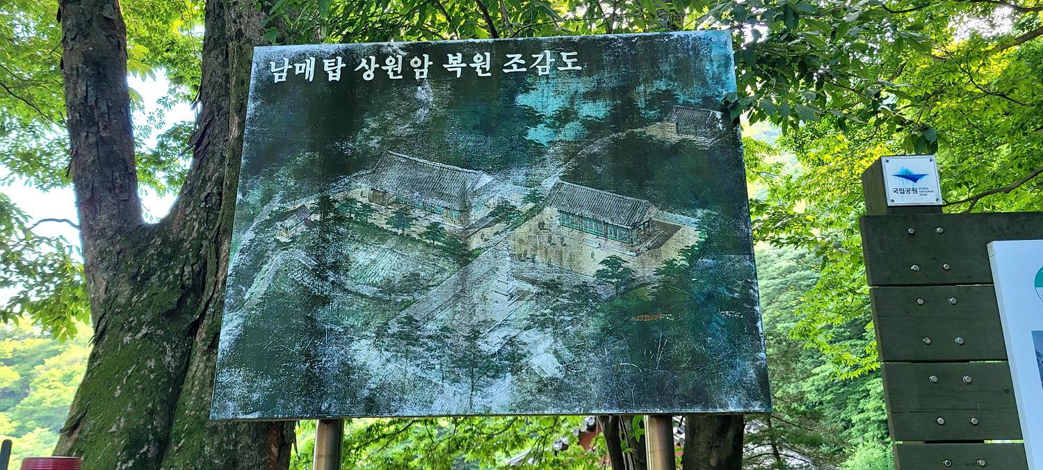 남매탑 전설 안내판 옆의 상원암 복원 조감도가 있어 살펴 보고.