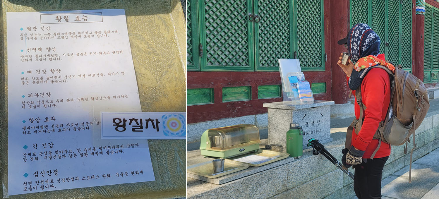 산마루편의점 식당에서 맘씨 좋은 주인장님이 구워준 따끈한 호떡과 어묵으로