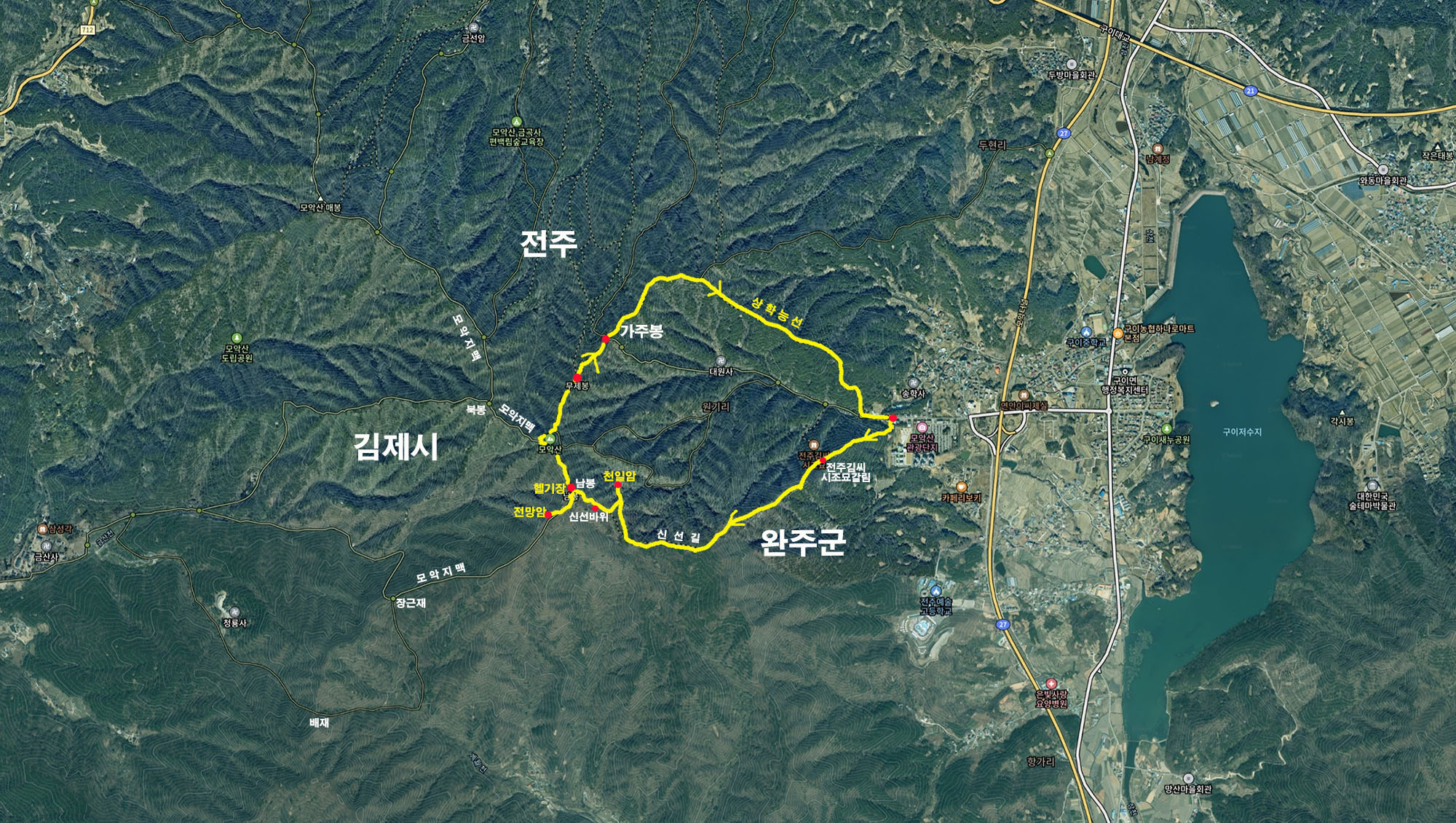 모악산 정상-무제봉-가주봉-상학능선-구이주차장 원점 / 약7km