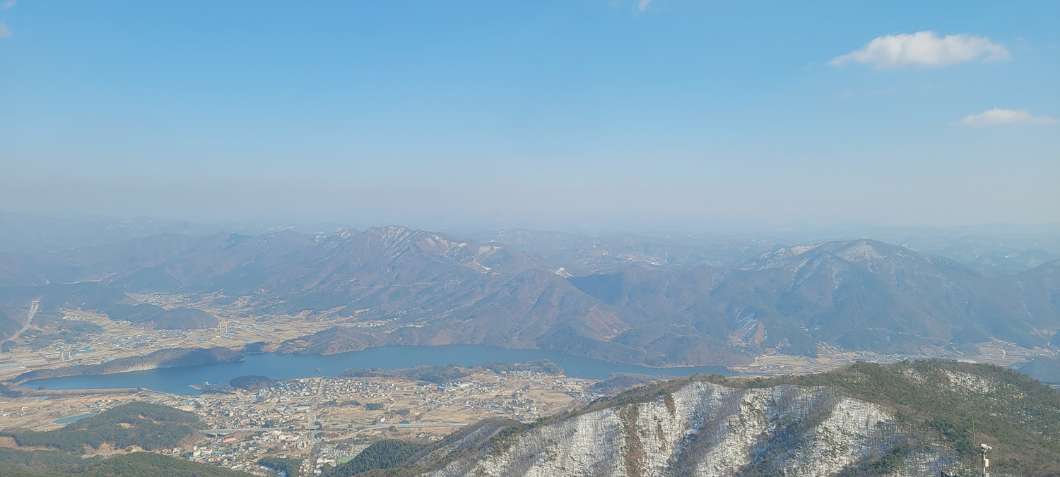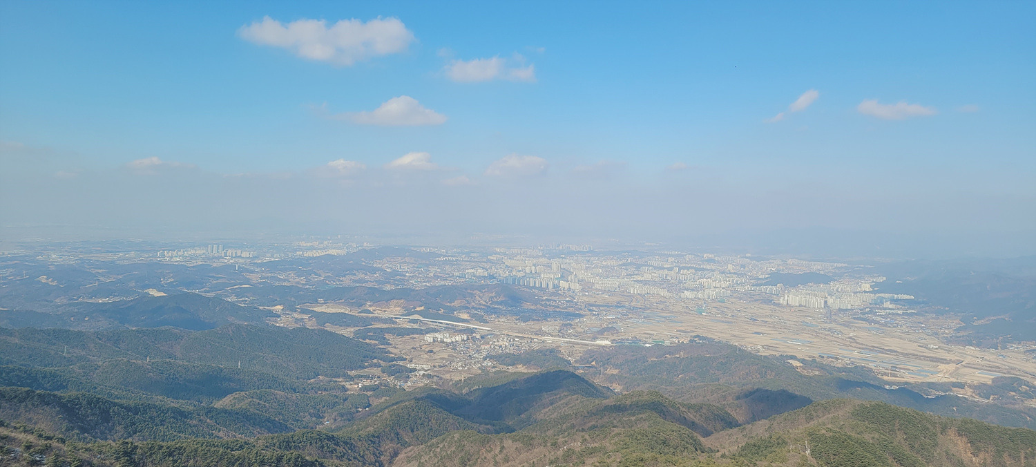 대원사 골짜기 길이구요. 아래로 모악산관광단지와 구이주차장이 보입니다.
