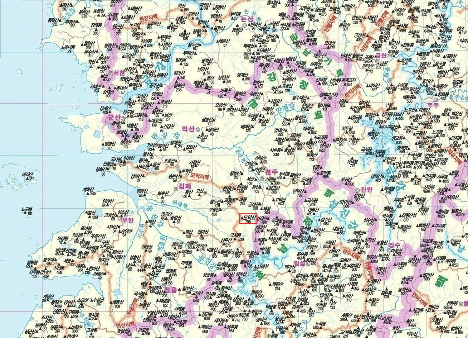 백두대간 영취산에서 갈라져 나온 금남호남정맥이