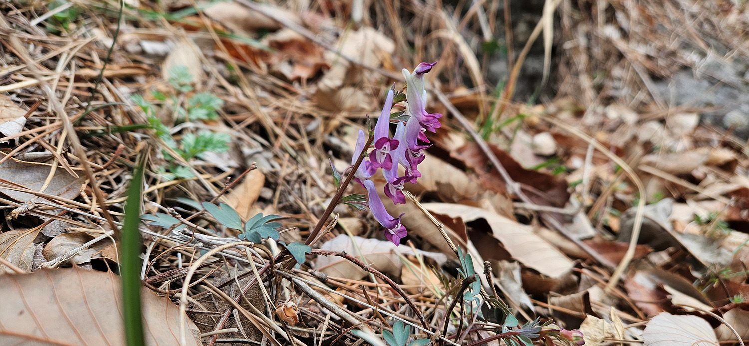 봄맞이 현호색이 늘씬한 맵씨를 자랑하듯 서 있고.