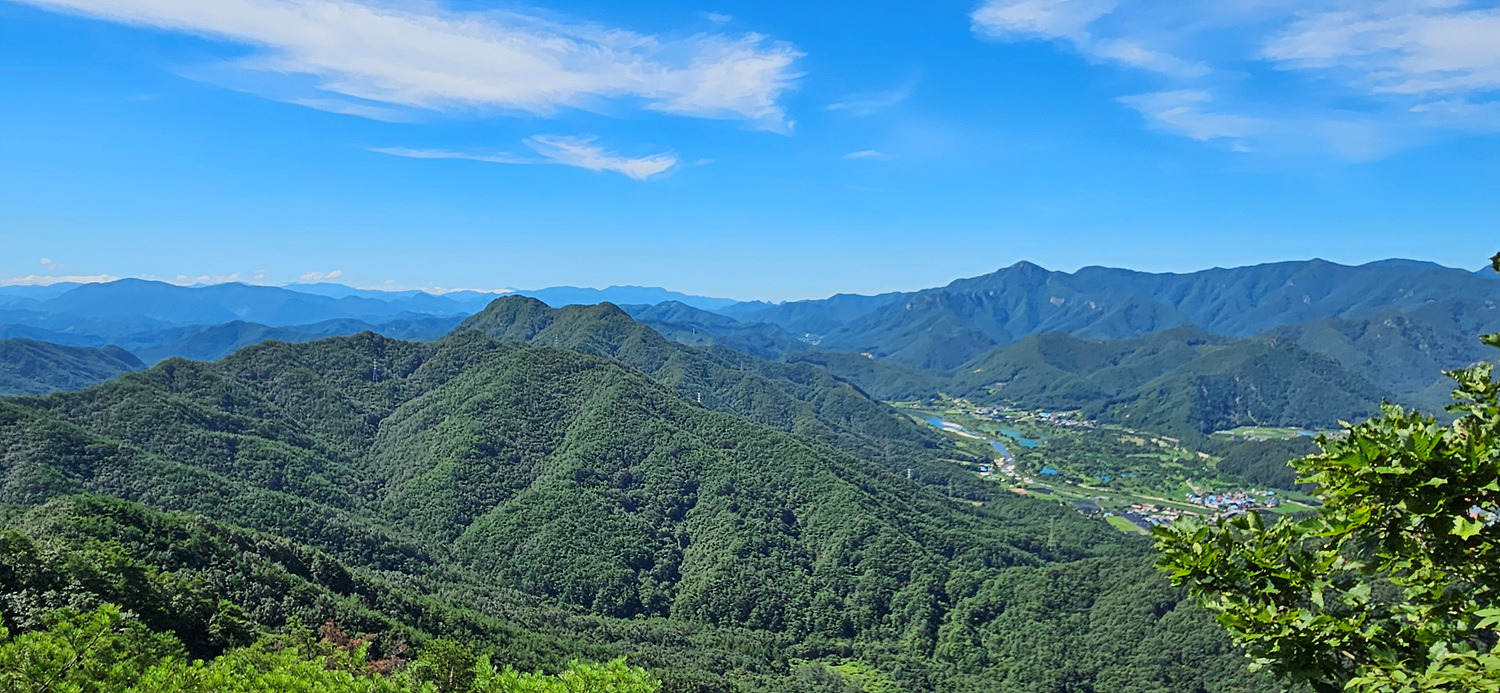 명덕봉 능선이 푸른 하늘 기운에 납작 엎드려 있고~