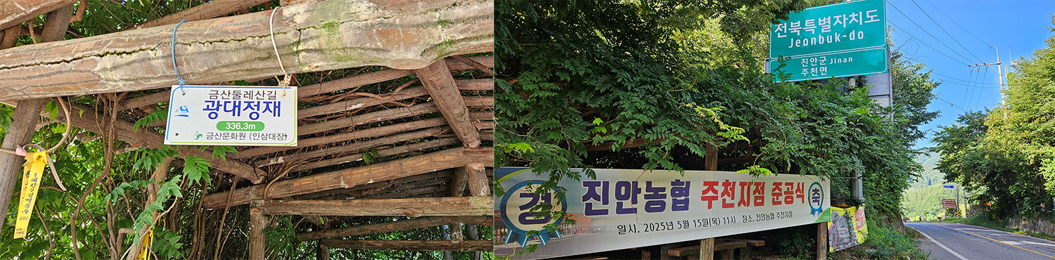 전라북도 진안군 주천면과 충청남도 금산군 남이면으로 나뉘는 경계에 있고