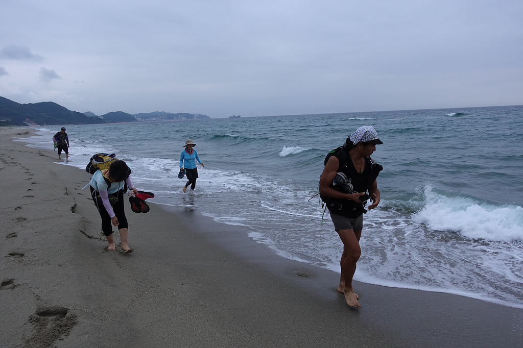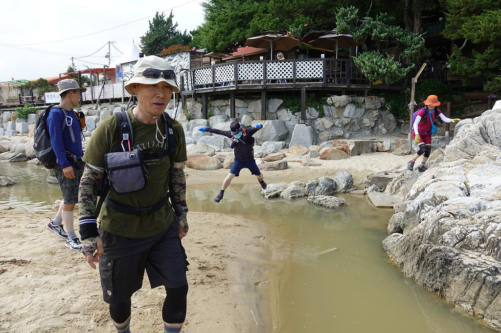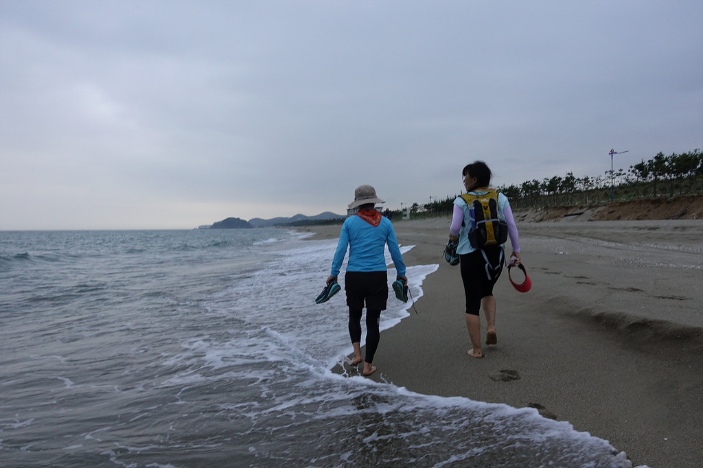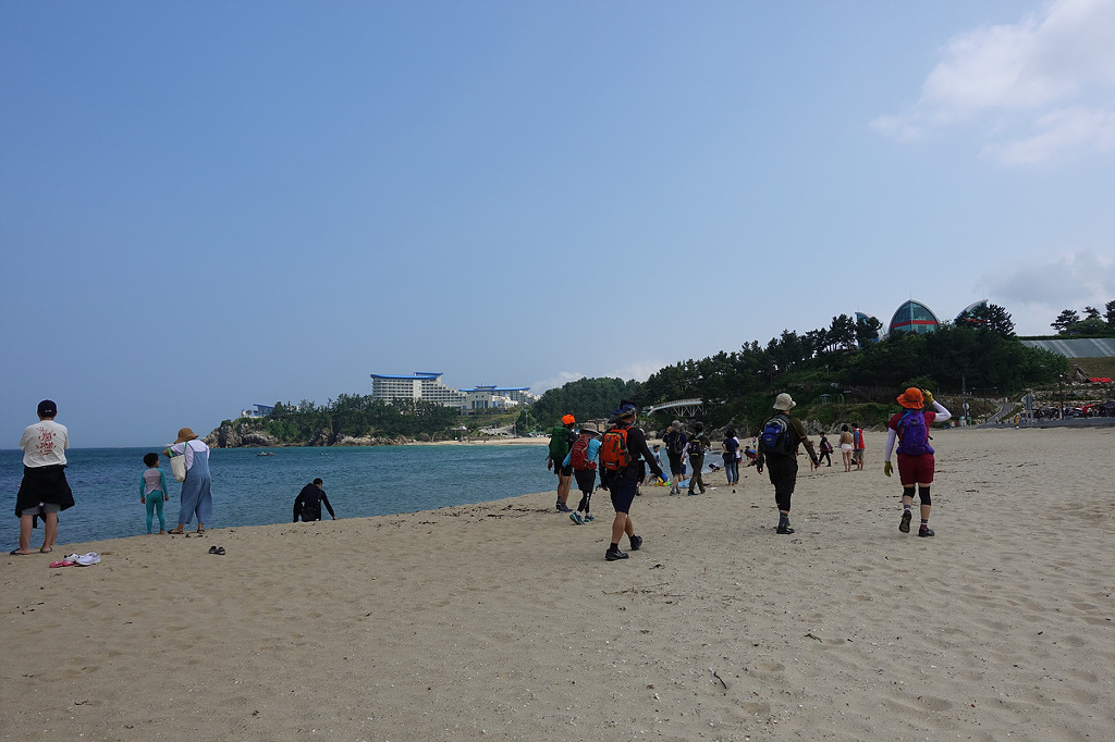 일부는 바닷가에 발 담그며 피로 풀며 걷자고 하여...
