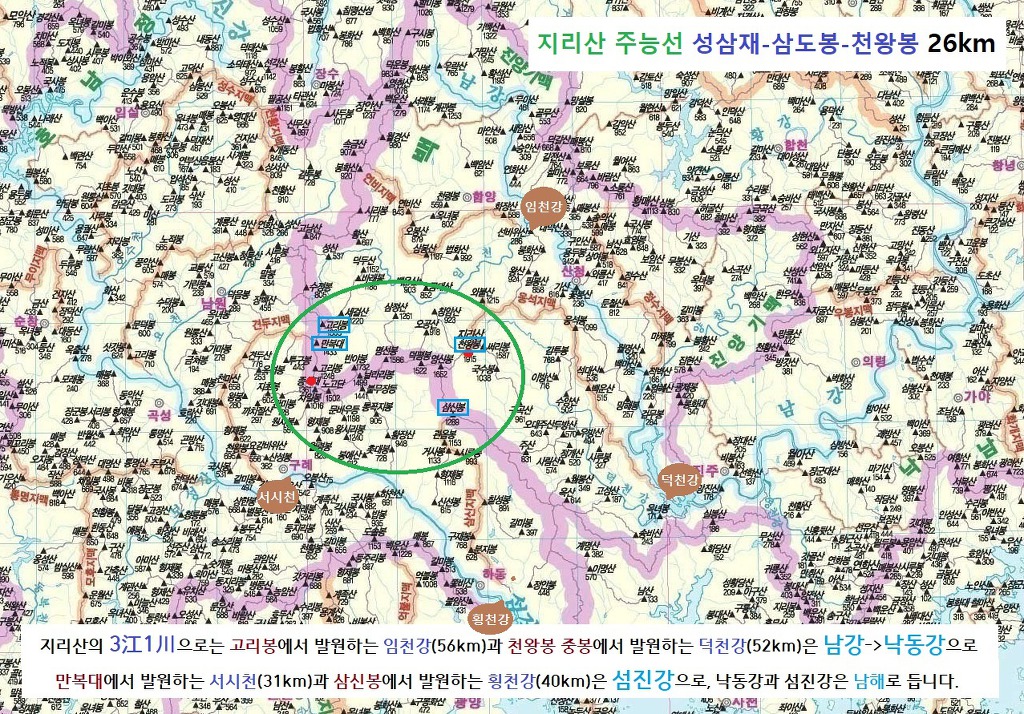 천왕봉, 중봉 쪽에서 발원하는 덕천강(52km)