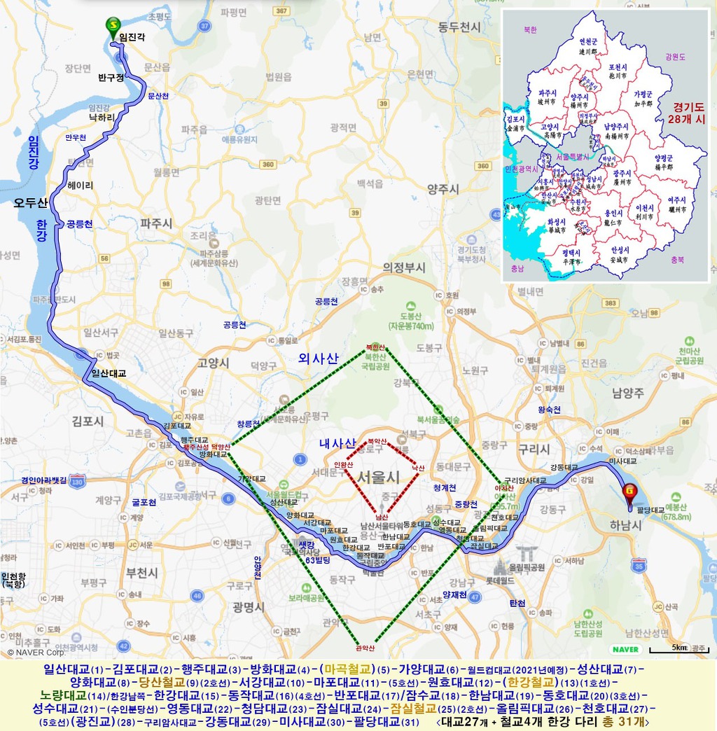 경기도 파주 임진각 ~ 임진강 / (서울) / 한강 ~ 경기도 하남 팔당대교 전까지