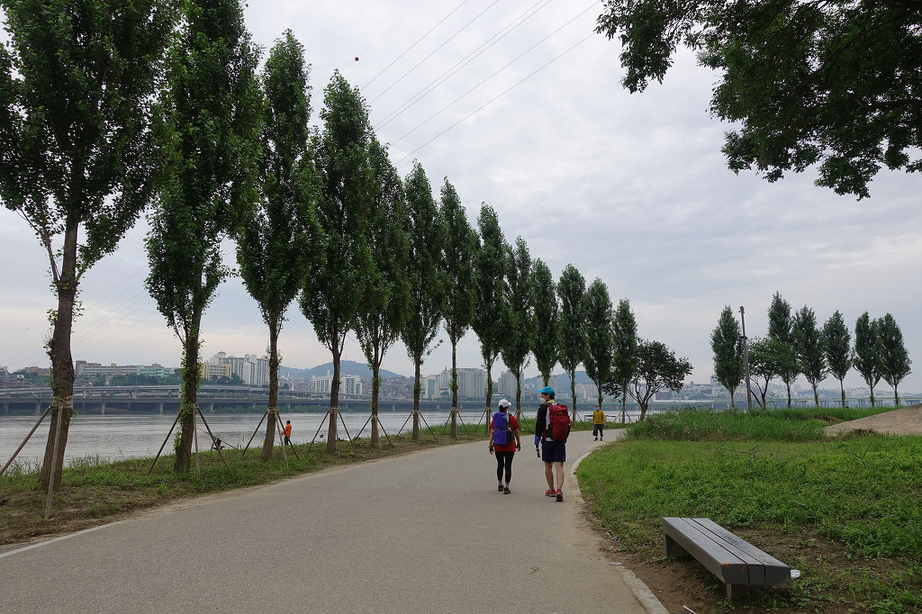 행복하게 메타세콰이어 숲을 걸어오며 덕풍교까지.