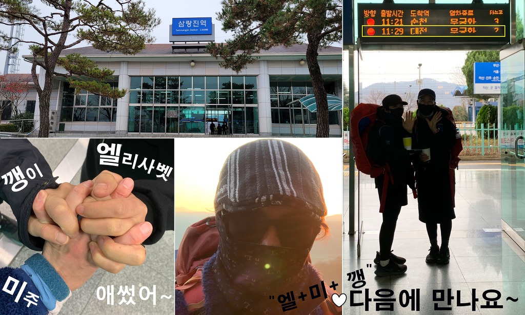 타는 기차가 달라 엘리언니랑 저랑 먼저 기차 타러 들어가고