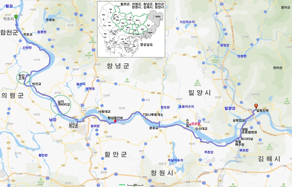 경남 합천-의령-창녕-함안-창원-김해-밀양까지~