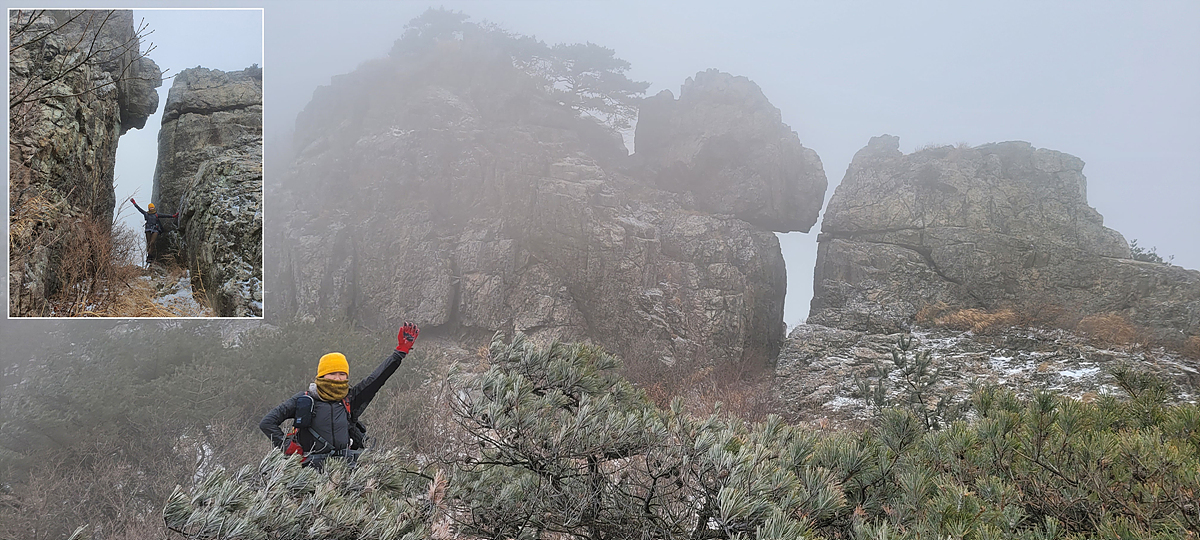 눈이 곱게 내려 있으니 바위 오르는 것도 여간 조심스러운게 아니었습니다.