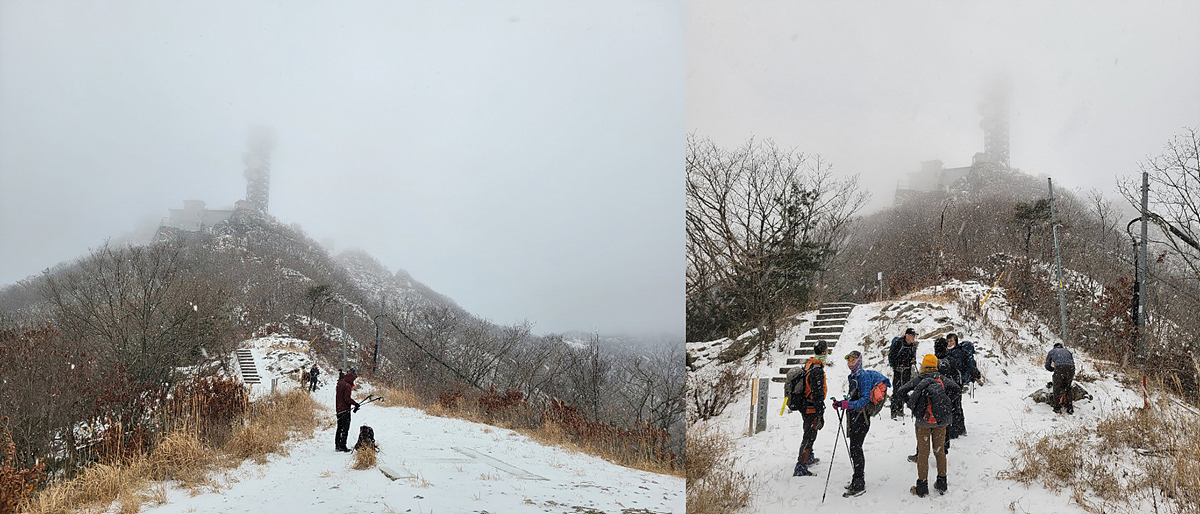 눈안개 땜시... 산행하며 다들 눈 뜬 봉사들 됐네요.