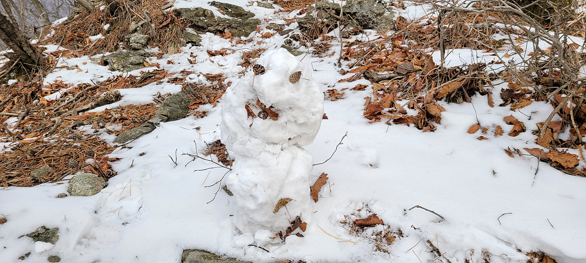 올라가다 보니 눈사람이라고 눈 뭉치 두 개 쌓아놓은 게 있길래...