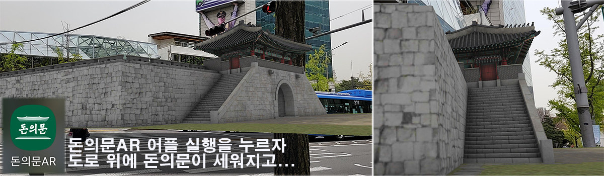 휴대폰 화면에 사대문인 돈의문과 성이 나오니