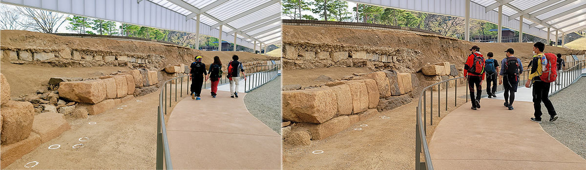 그 옛날의 파편인 성곽 돌을 마주하네요.