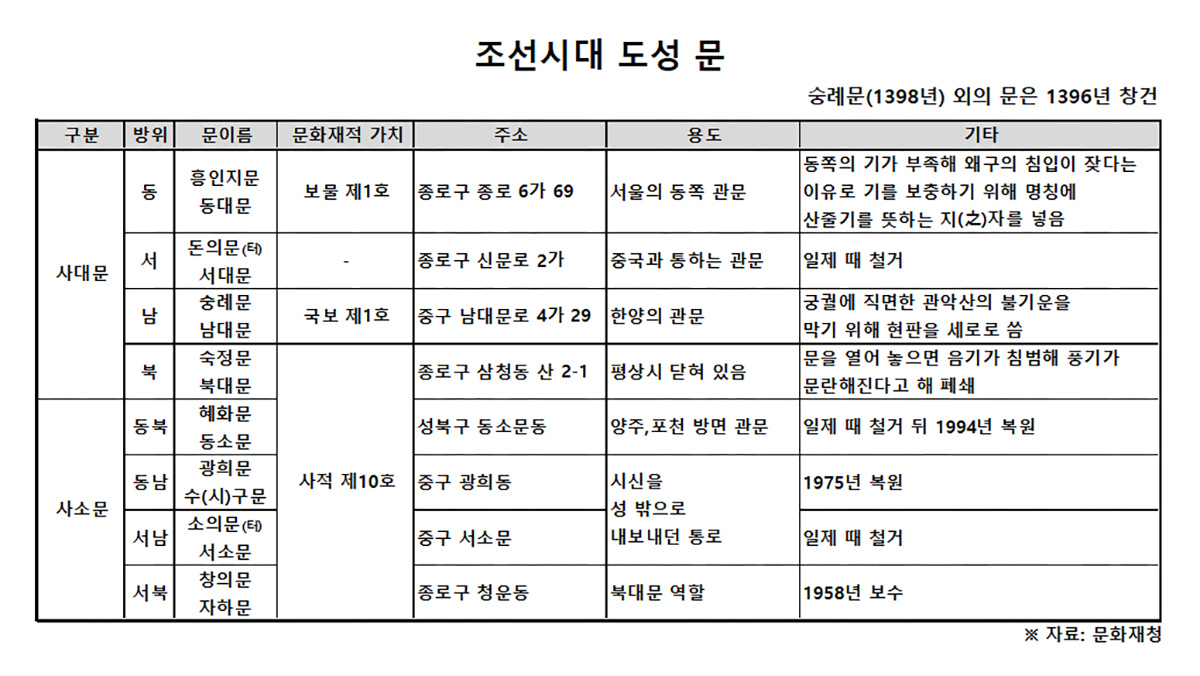 북쪽의 숙정문은 이름이 예외적