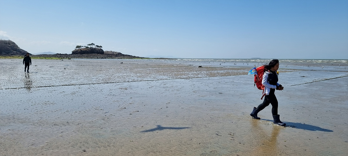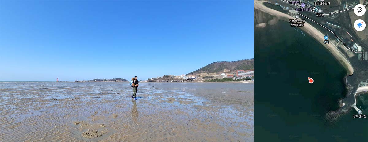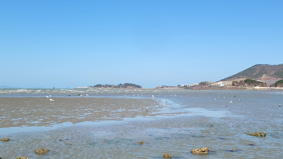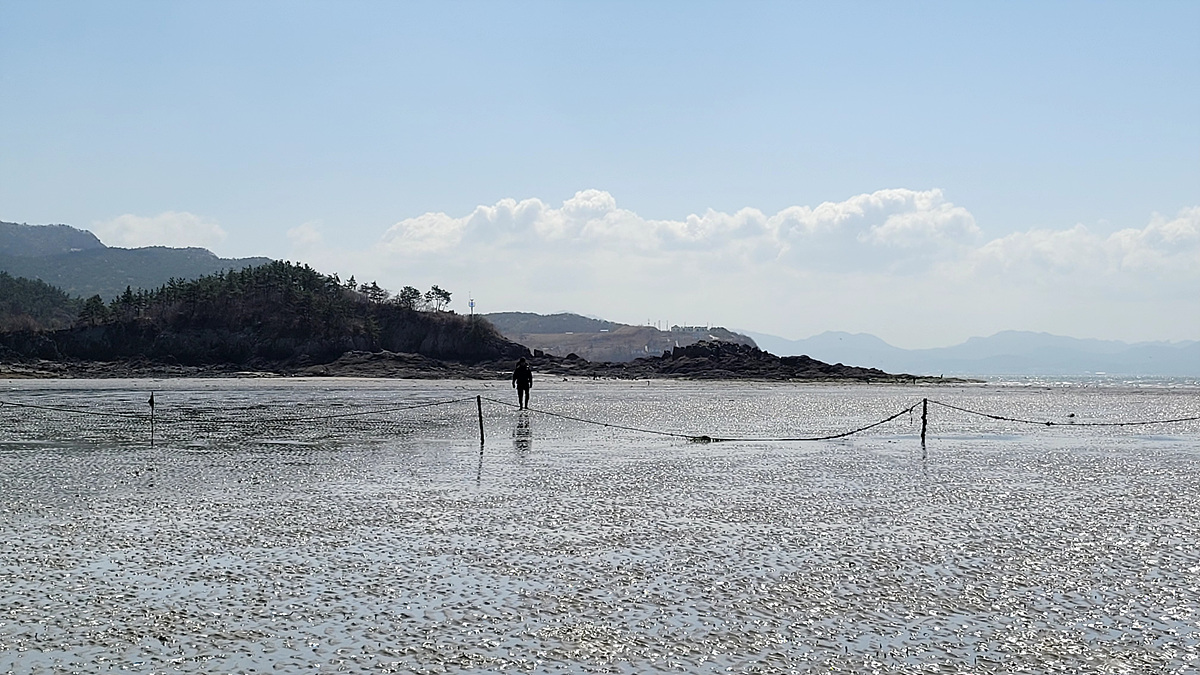 물이 제법 빠져나간 작당마을 갯벌~ 진입~
