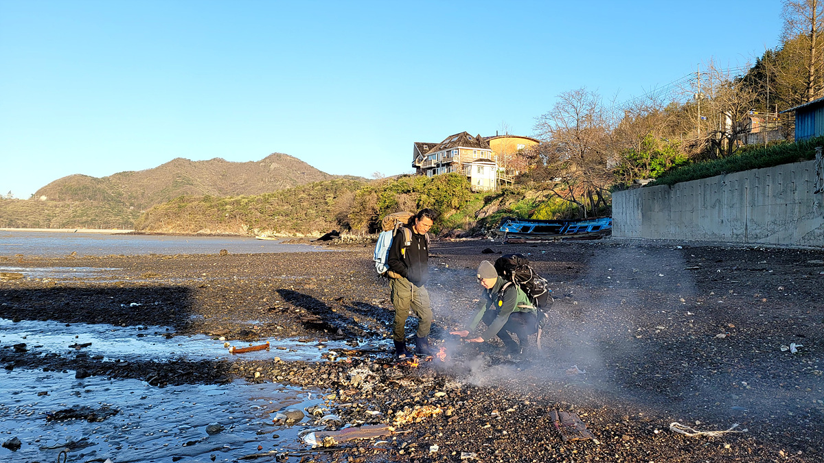 우리 춥다고 누군가 해안에 이렇게 불까지 지펴놨습니다.