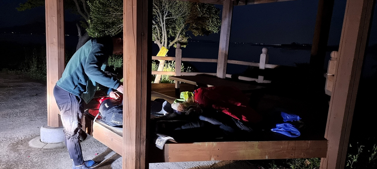 여기 정자에 침낭 펴고 한숨 꼴깍~