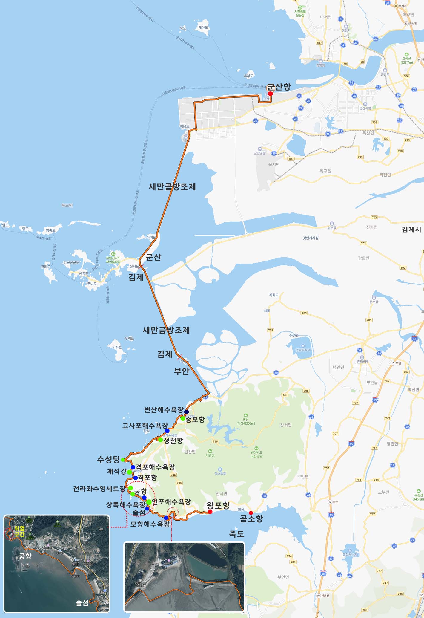 새만금방조제(부안/김제/군산)를 지나 군산항까지 80km