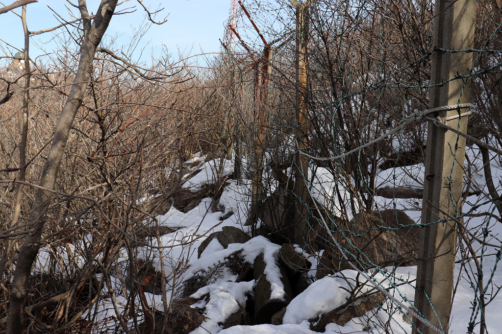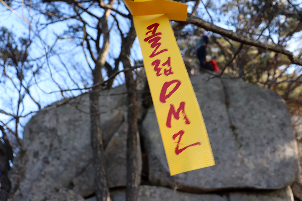 인간의 발걸음을 거부한 청운대 앞능선 저기 개척할때 얼마나 고생했는지 왼쪽은 낭떠러지 절벽, 밑에는 철책선, 잡목