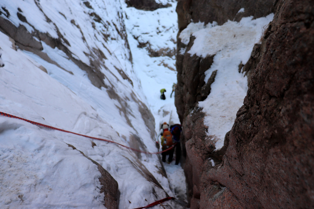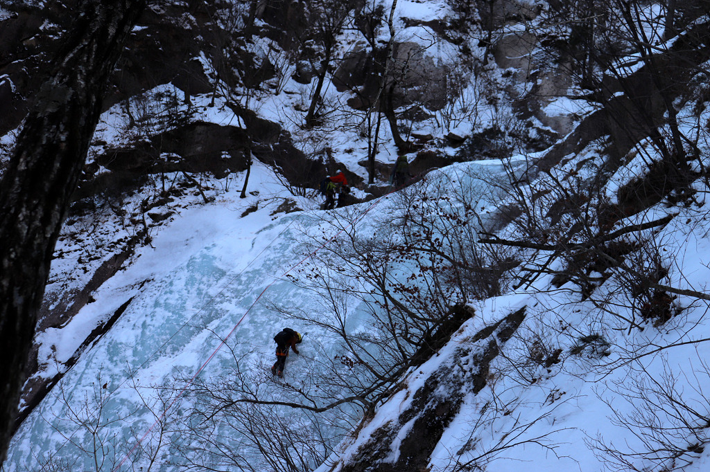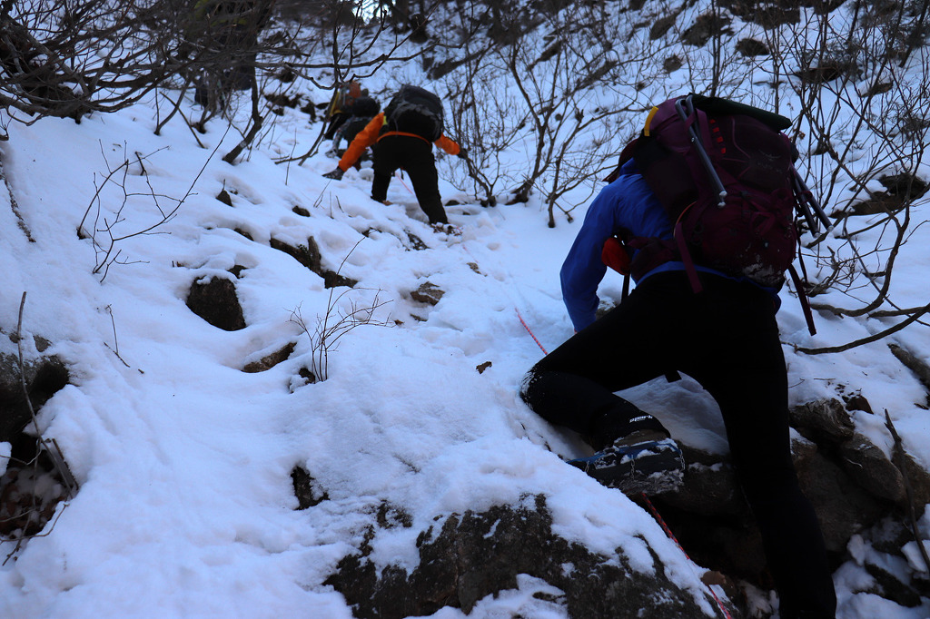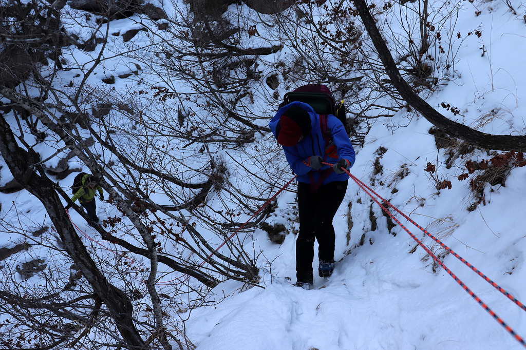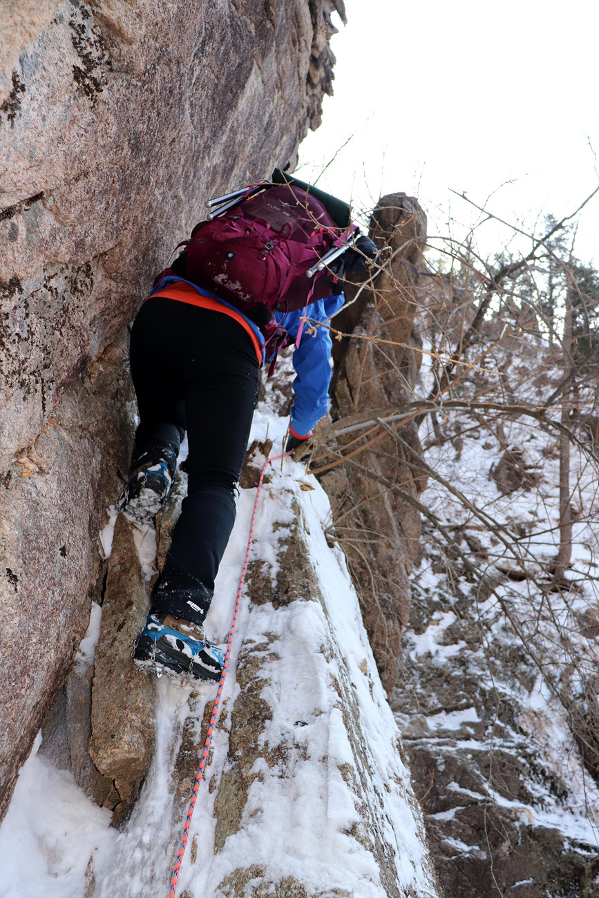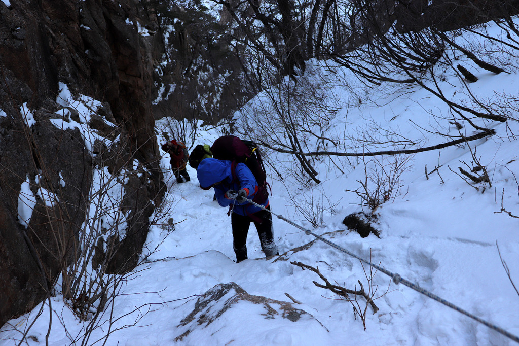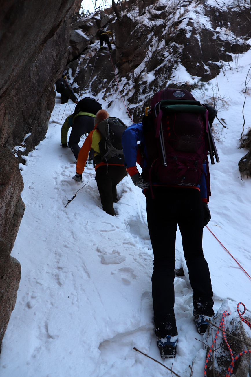 겨울 골짜기들어가는데 보조자일도 없고..슬링하나밖에.. 보조자일을 사용하라고 줍니다