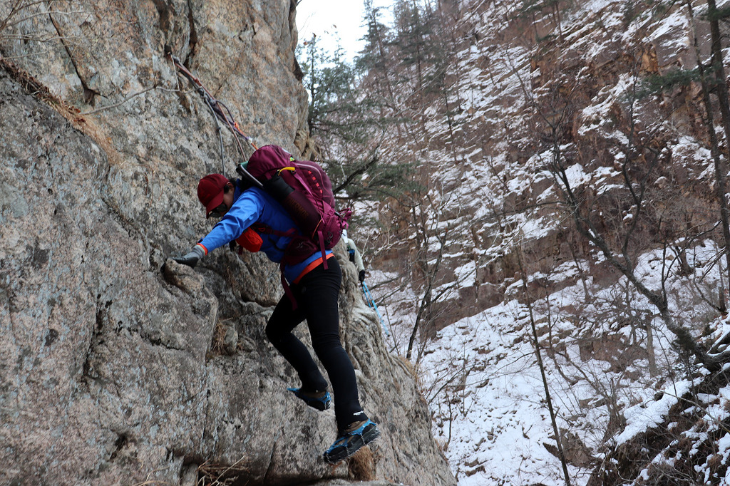 보조자일없이 올라올려고 할수없이 보조자일 내려주고 여성분 너무 힘들어하길래 하네스까지 내려준다