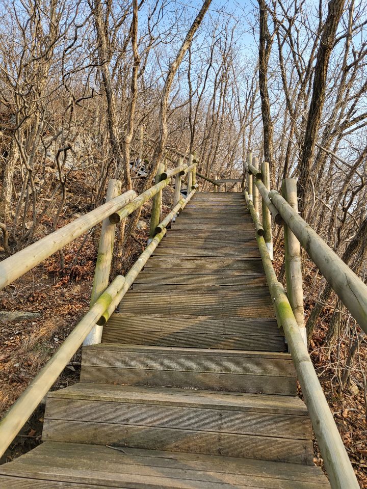 깍아 지른듯 길도 안좋은데 안전시설이 잘돼있어 오르는덴 문제없어