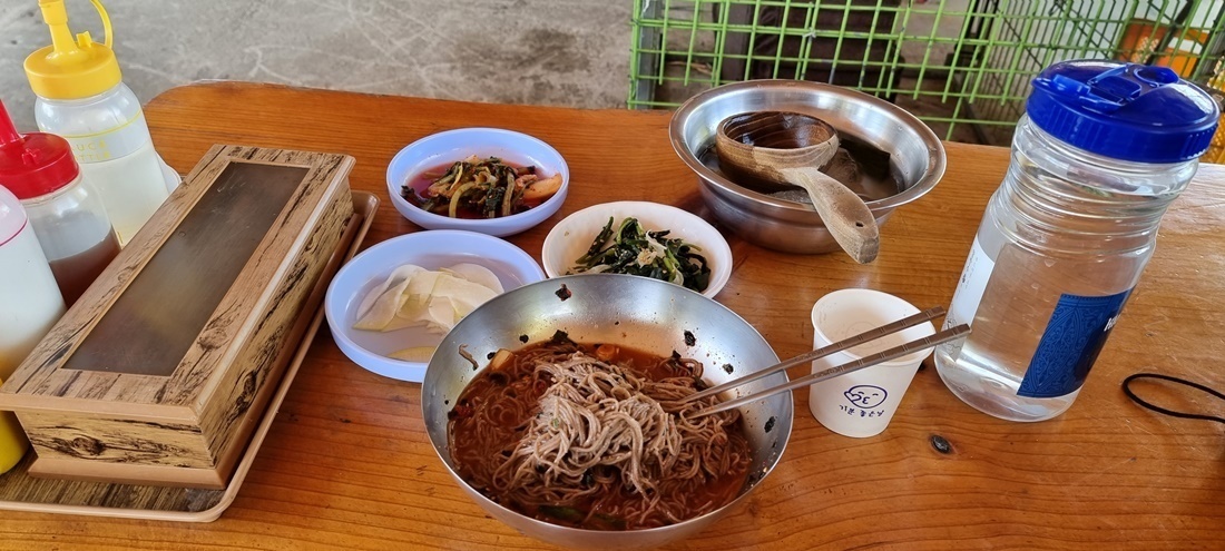고성군 토성면 지난날 대간 둘레길과 같은 길을 걷다 보니 동루골 막국수집에 들어가 점심으로 막국수 하나 시키고