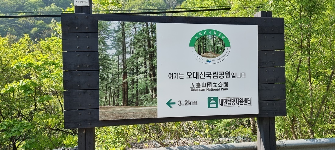 56번 지방도로 삼거리에서 오대산 내면 분소까지 3,2km