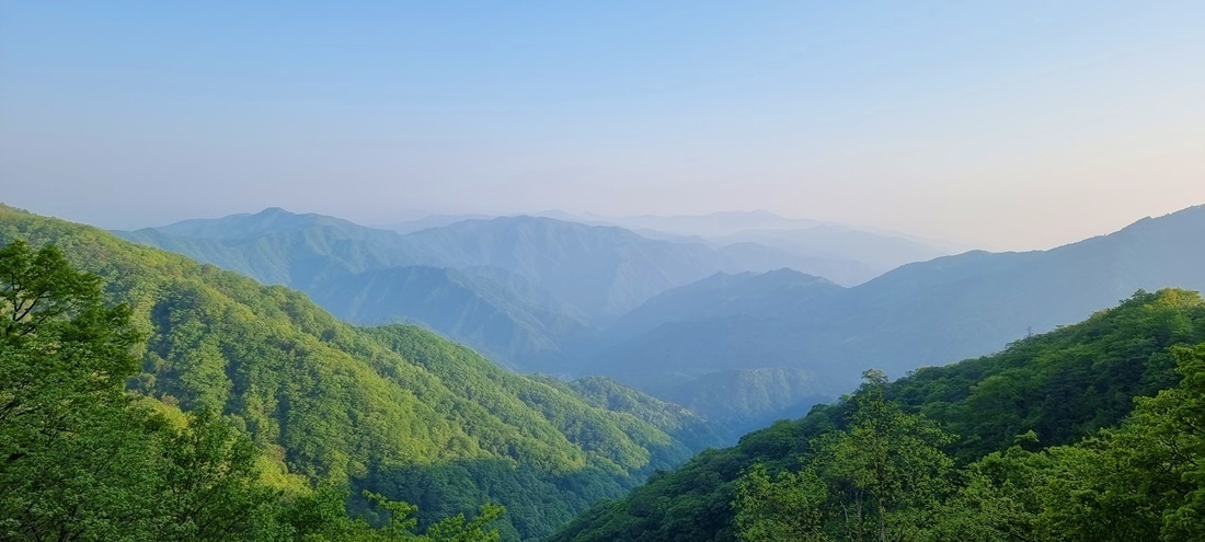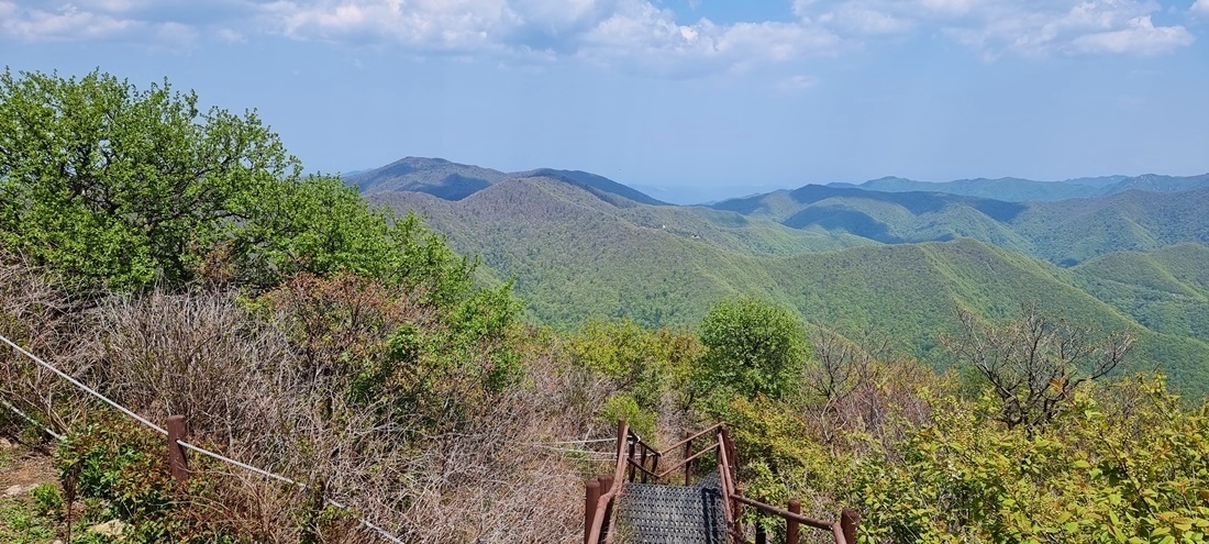 멀리 마산봉에서 이어지는 대간길이 보이고