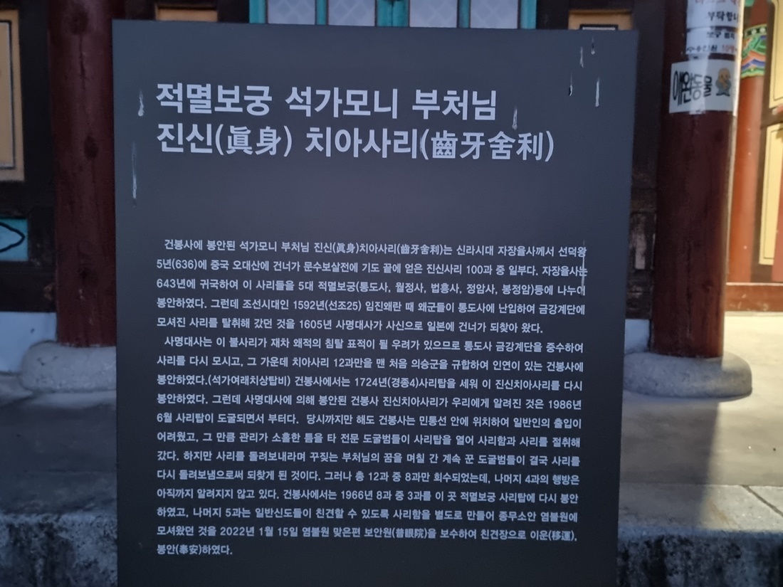 적멸보궁에 모셔진 삭가모니 부처님 진신 치아사리