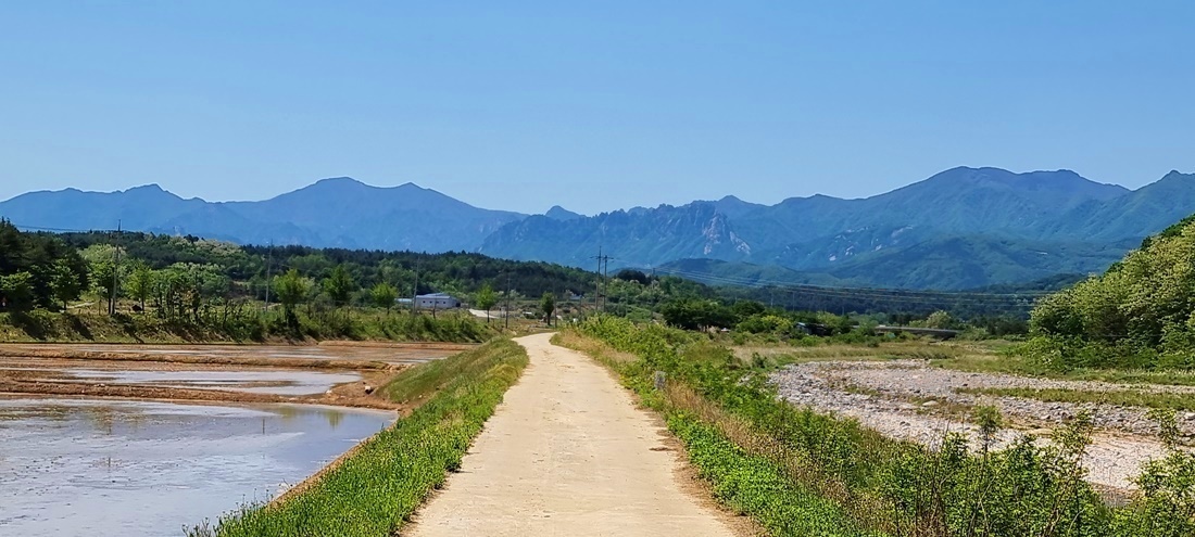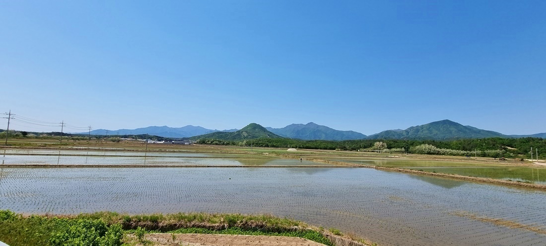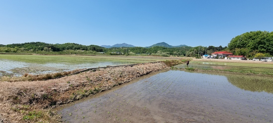 논에는 모심기가 모두 끝나고 한가로운 들판이 펼쳐진다.