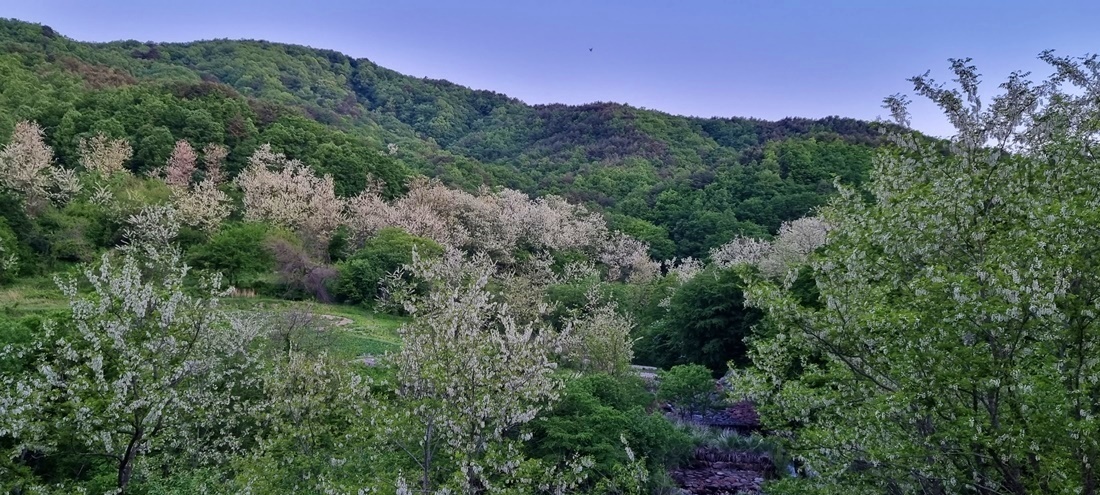 이른 아침 풍경 속으로 보이지는 않지만 청아하게 들리는 새소리와 아카시아 향이 어우러져